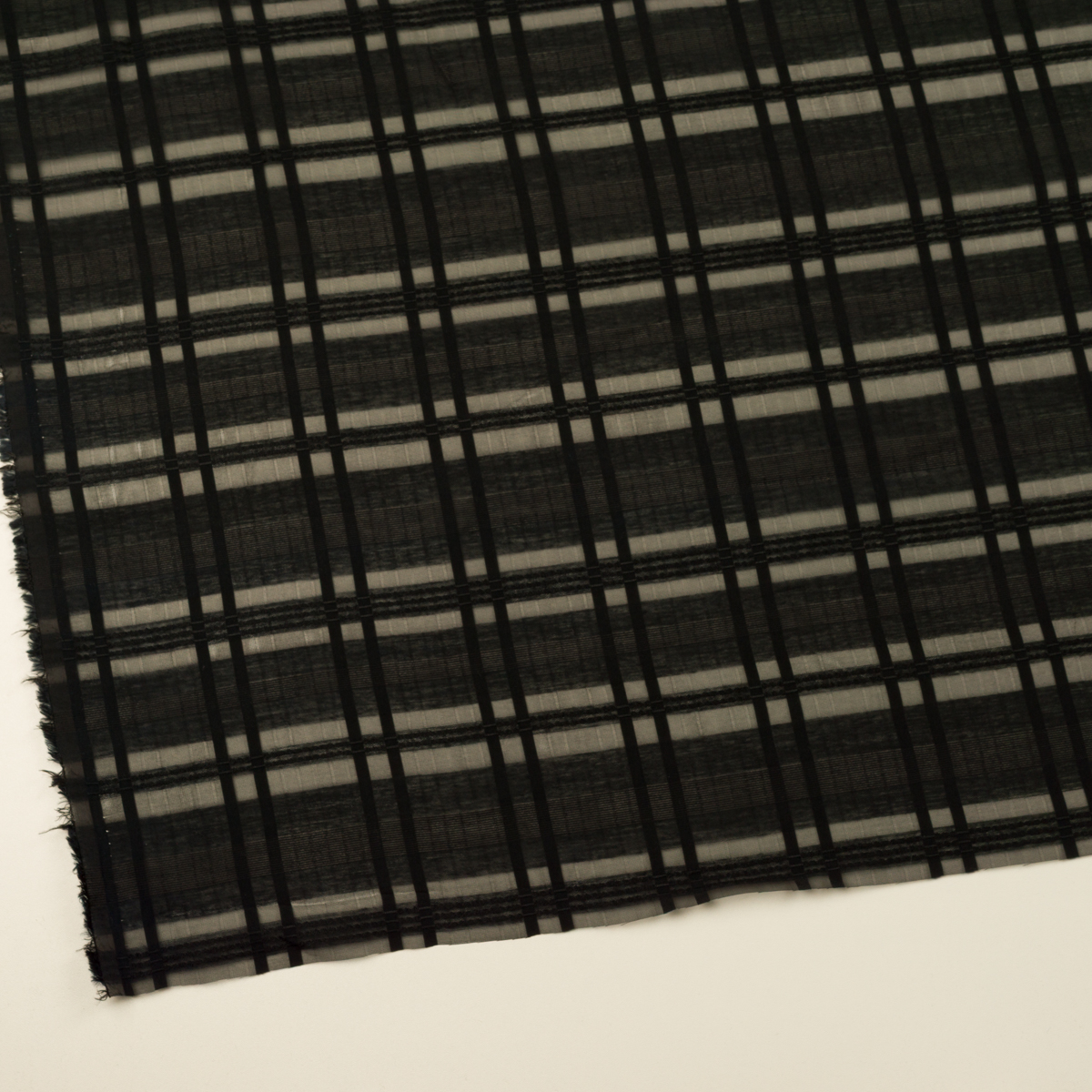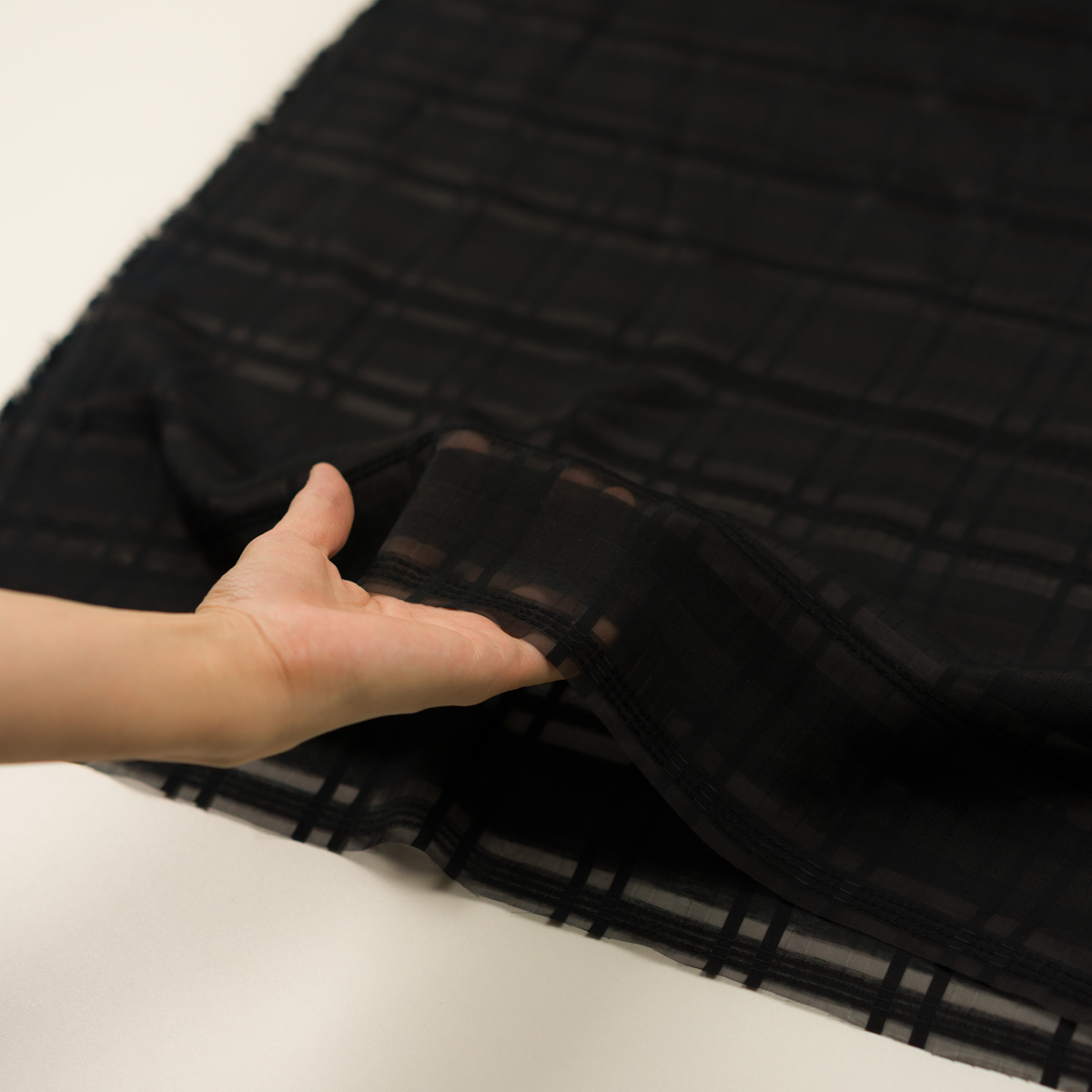 ・薄地で透けのあるボイル地に、タテ13cm×ヨコ5.5cm送りのチェックドビー織