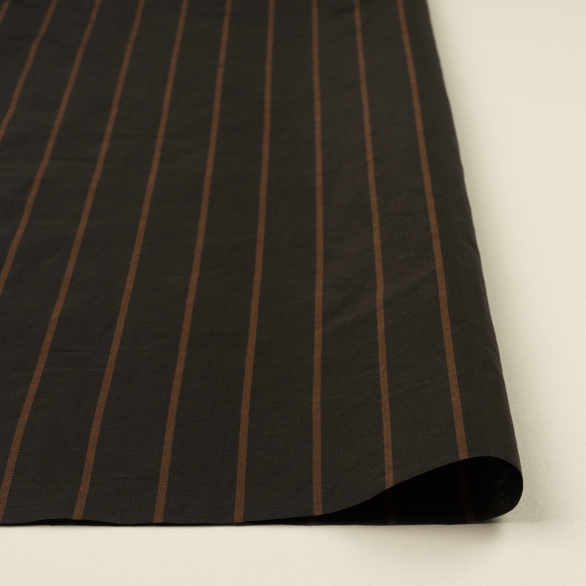 【アウトレット】リネン&キュプラ×ストライプ(ビターチョコレート&ブラウン)×ポプリン