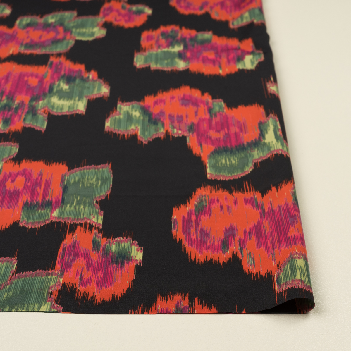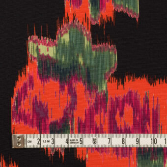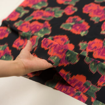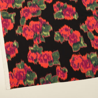 【アウトレット】ポリエステル×ボタニカル(ブラック&オレンジレッド)×デシン