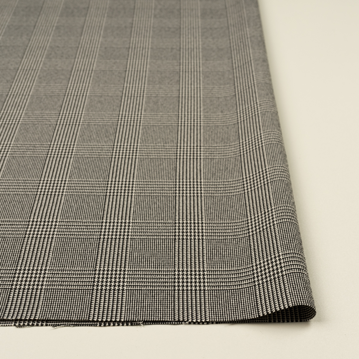 ・タテ4.5cm×ヨコ4.6cm送りのグレンチェック、二重織ストレッチ