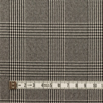 【アウトレット】ポリエステル&レーヨン×チェック(ミルク&ブラック)×千鳥格子ストレッチ