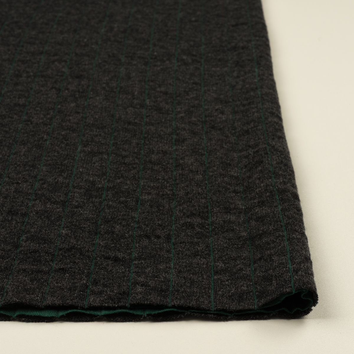 【アウトレット】ウール&ナイロン混×ストライプ(チャコール&クロムグリーン)×W天竺ニット