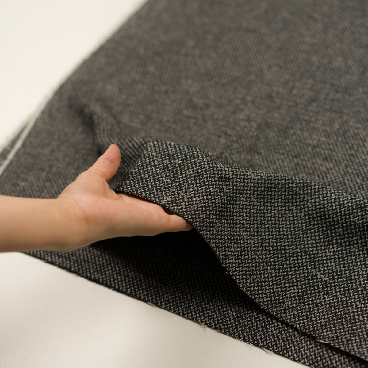 ・モコモコとした壁糸、ふっくらとした無撚糸など、意匠糸を組み合わせて織られた、ファンシーツイード