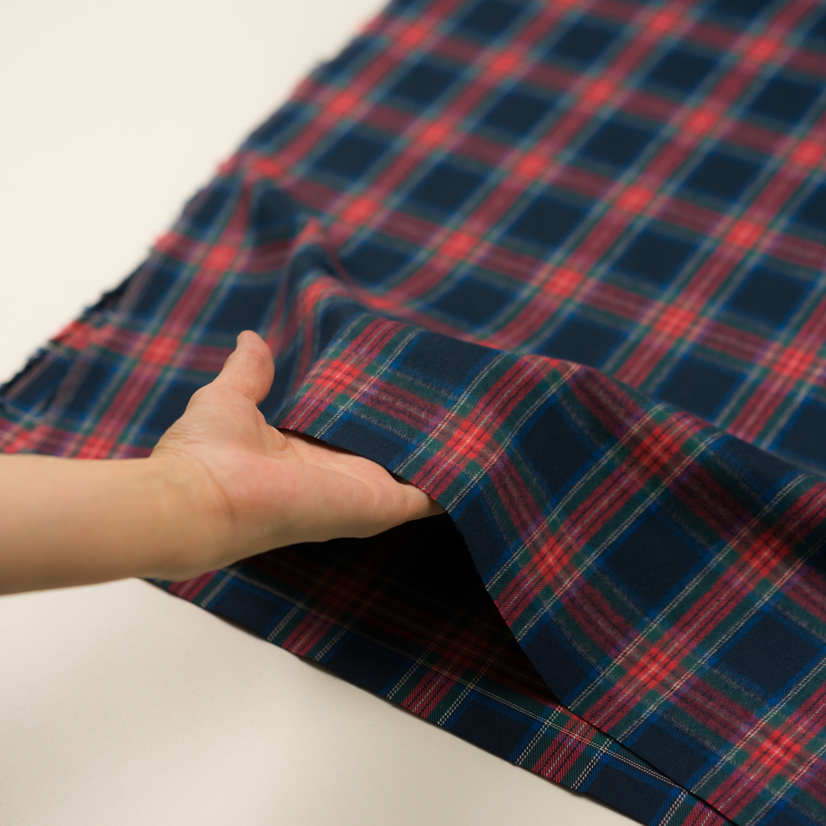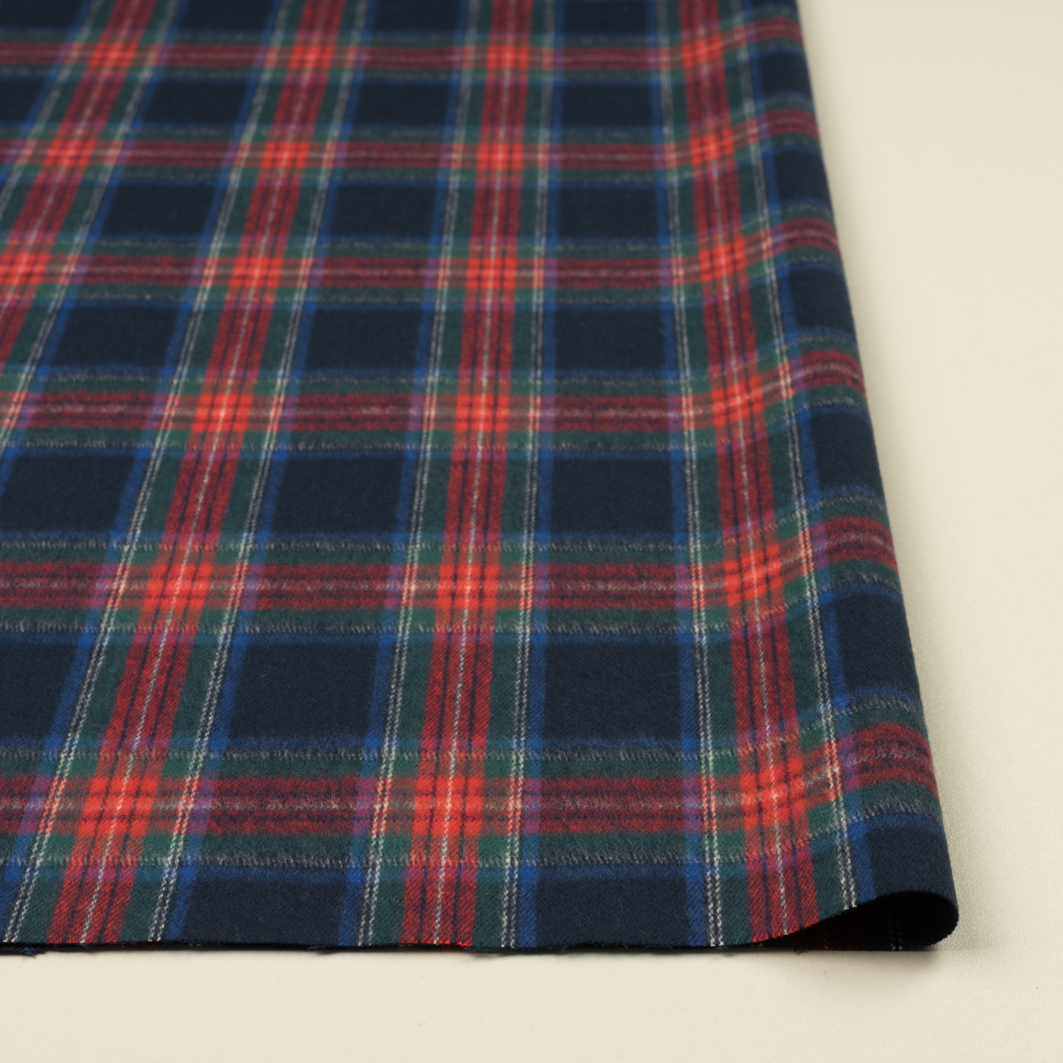 ・タテ7.3cm×ヨコ6.5cm送りのタータンチェック、30番手双糸使用の綾織フランネル