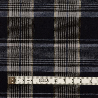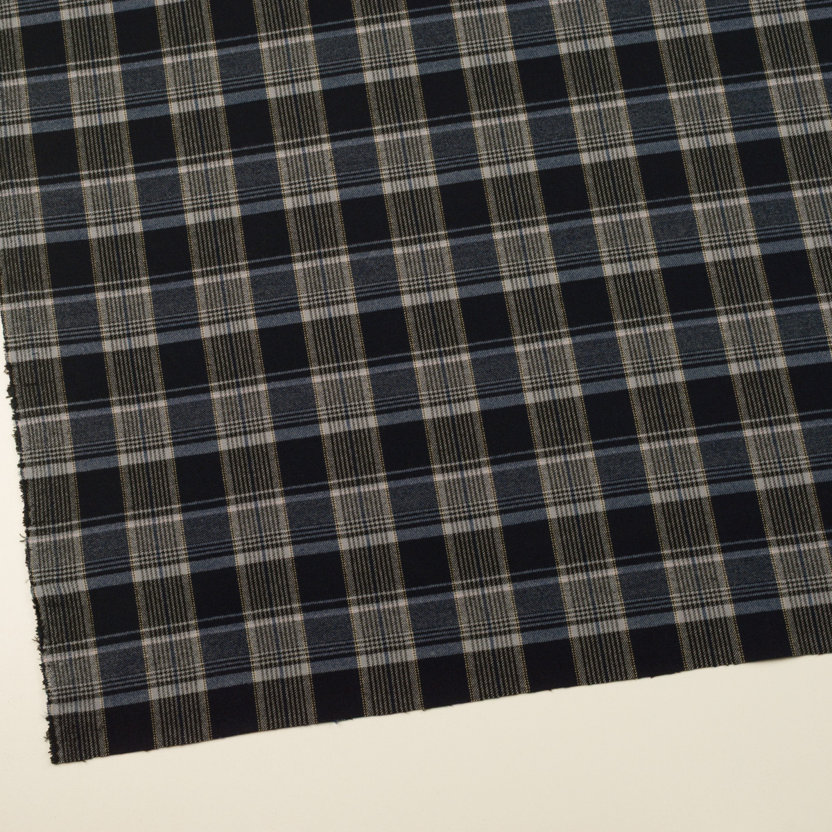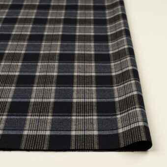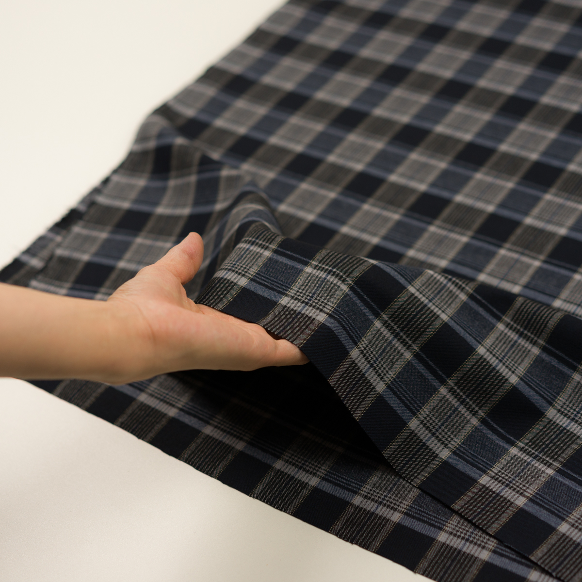 【アウトレット】ポリエステル&レーヨン×チェック(ダークネイビー&ネイビー)×二重織ストレッチ