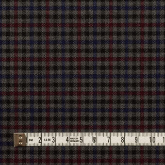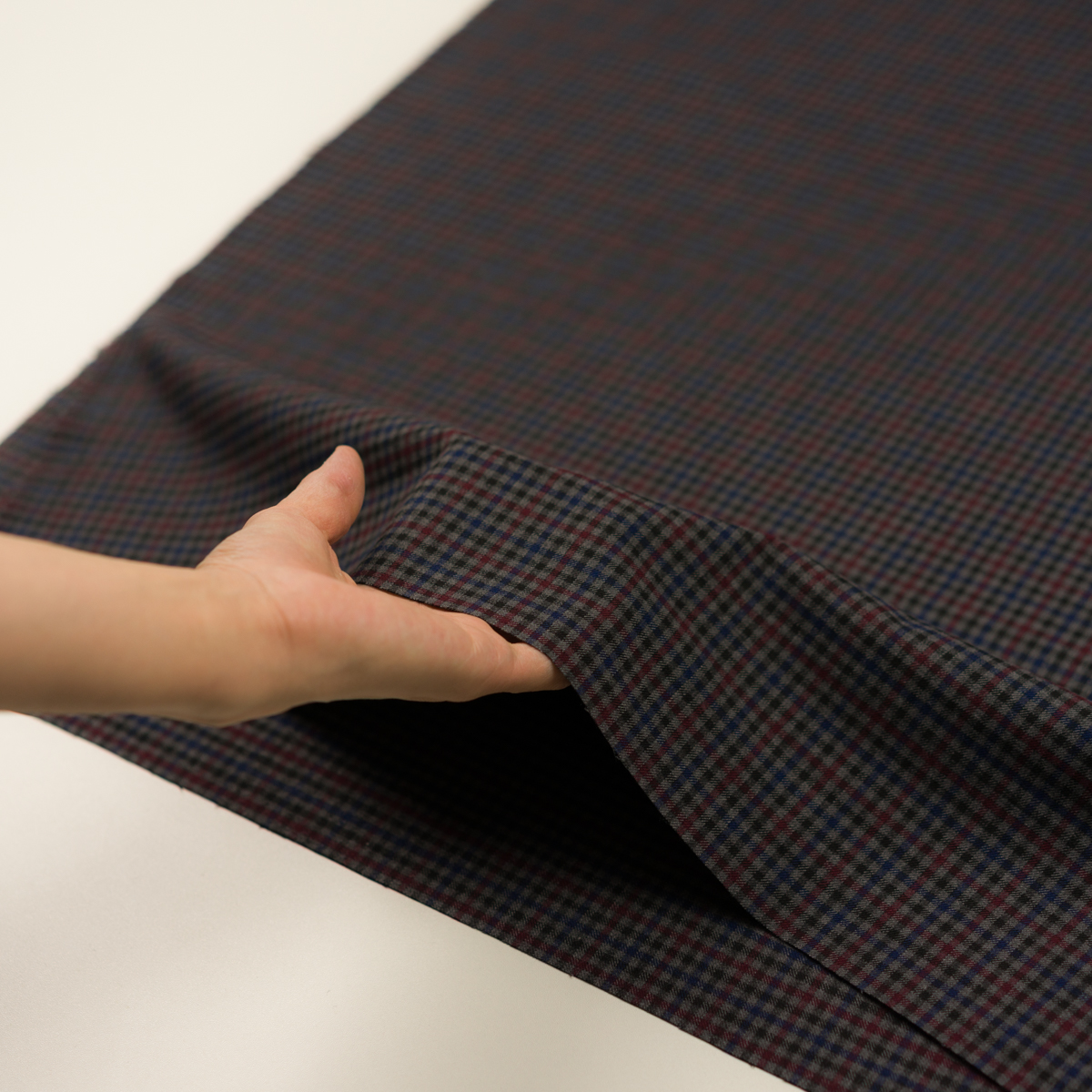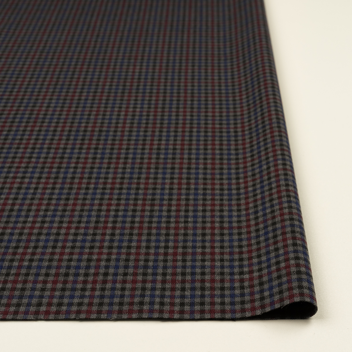 【アウトレット】ポリエステル&レーヨン×チェック(グレー、アガット&ブルー)×二重織ストレッチ