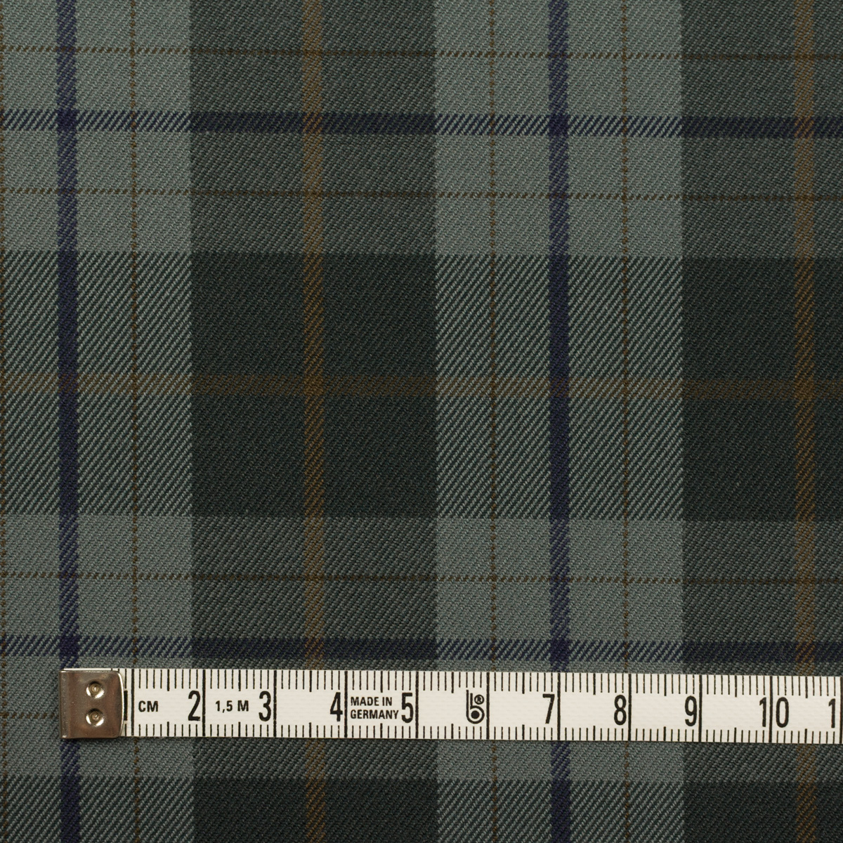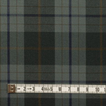 ・タテ7.4cm×ヨコ6.9cm送りのチェック、細かな綾目のサージ