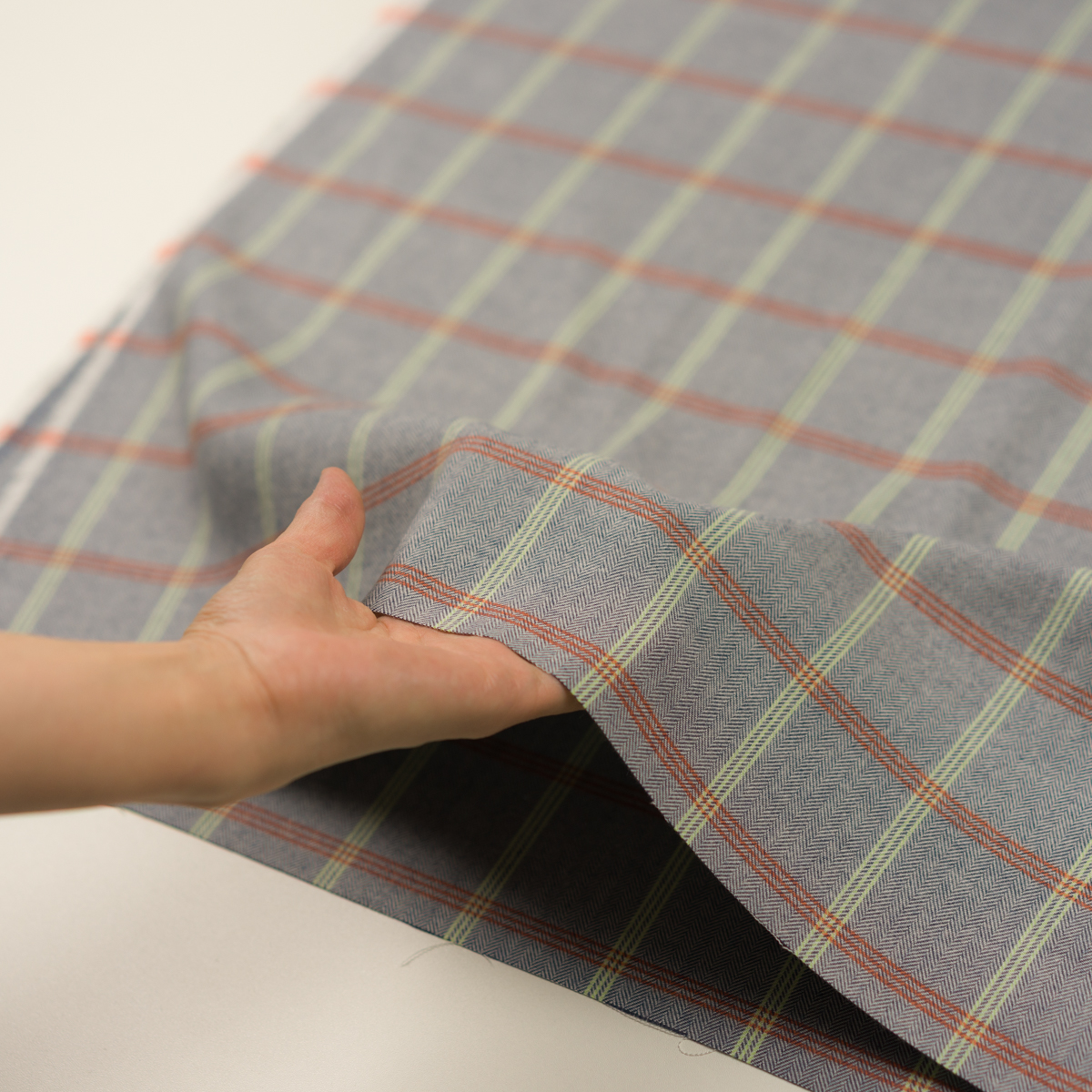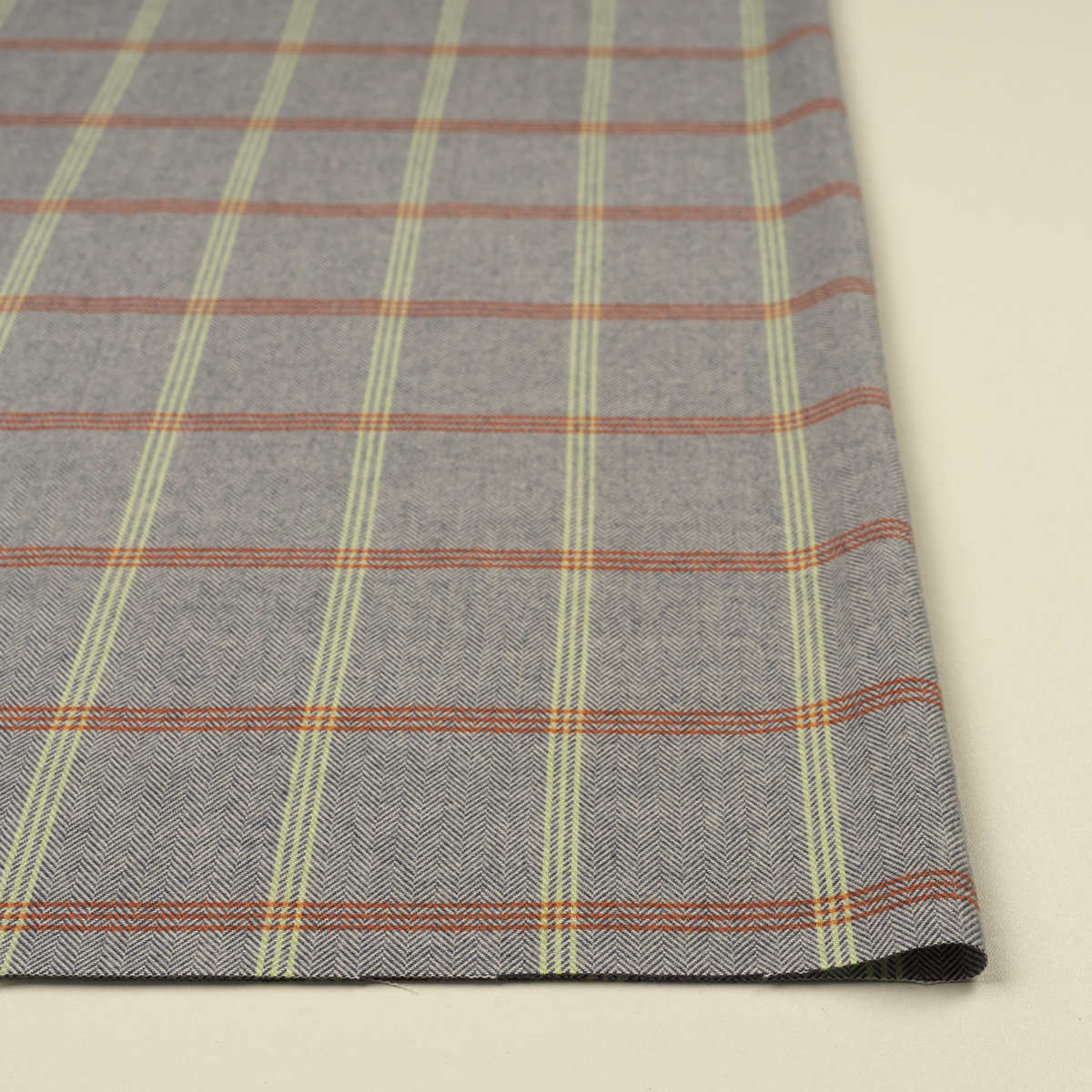 【アウトレット】コットン×チェック(アッシュネイビー、オレンジ&メロン)×ヘリンボーン