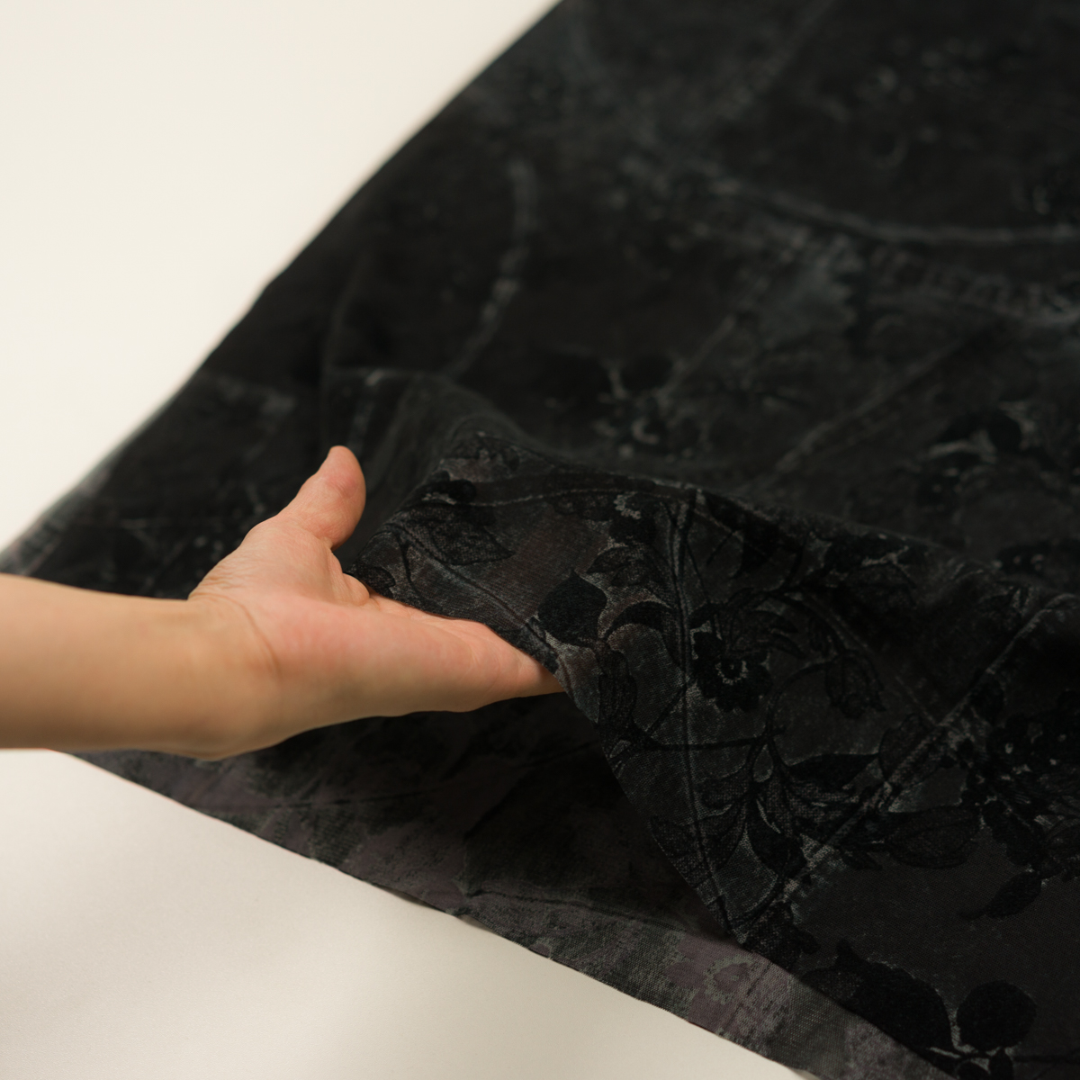 【アウトレット】ポリエステル&レーヨン×フラワー(チャコール)×パワーネット・フロッキー