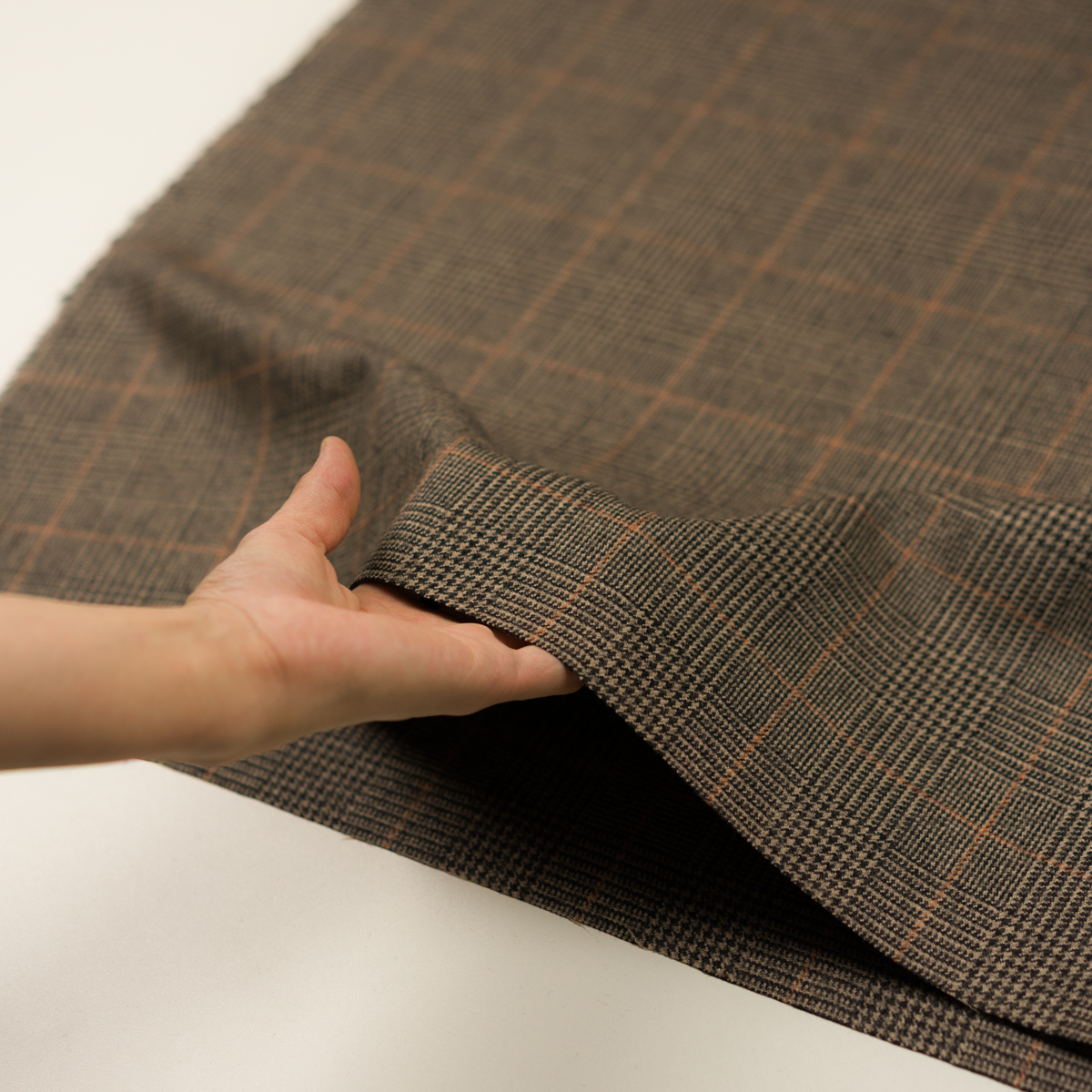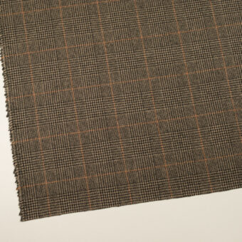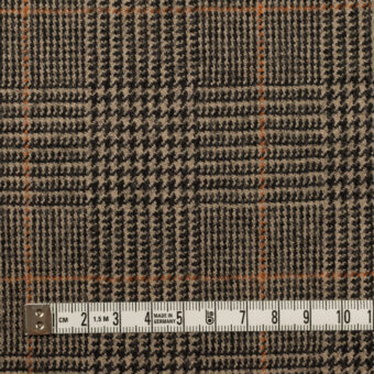 【アウトレット】ウール×チェック(ベージュ、ビターチョコレート&オレンジ)×ツイード