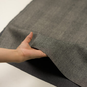 ・タテ12cm×ヨコ10.5cm送りのグレンチェックと無地がぴったり接結された、Wフェイス地