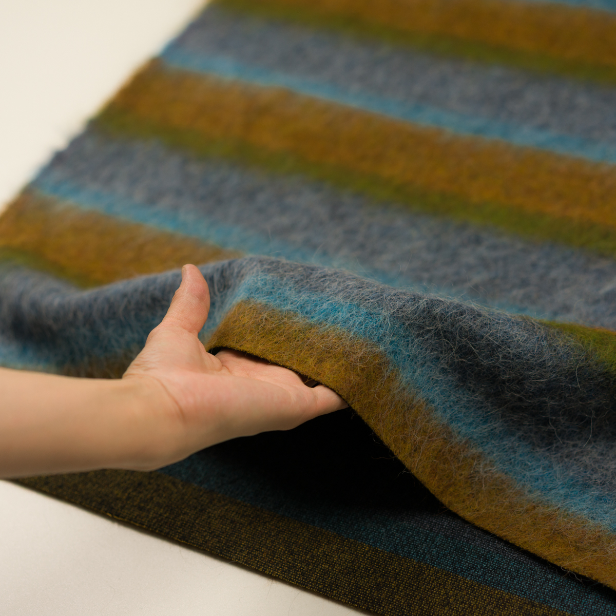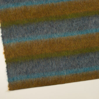 【アウトレット】ウール&モヘア混×ボーダー(ハニーゴールド&ブルーグレー)×シャギー