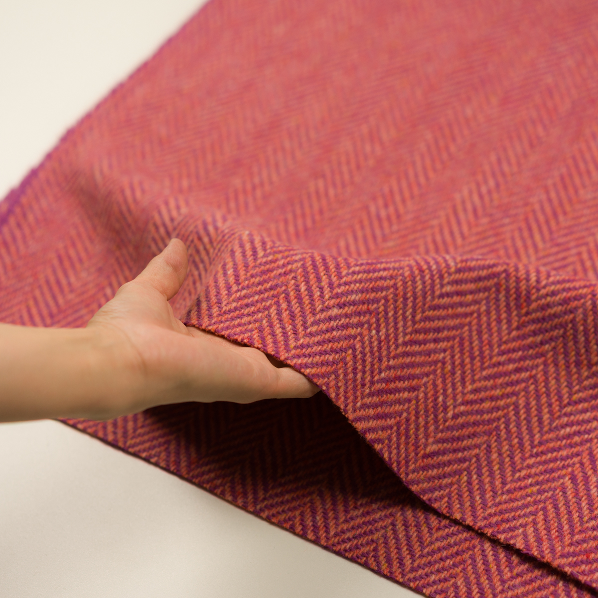 ・ふっくらボリュームある糸で織られた、杉綾地のツイード