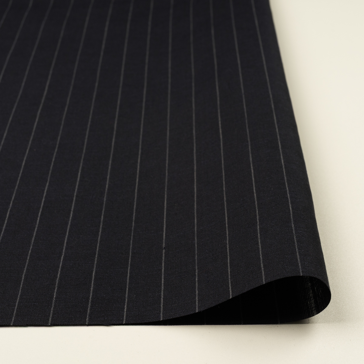 【アウトレット】リネン&ウール×ストライプ(ダークネイビー&ライトブルー)×ポプリン