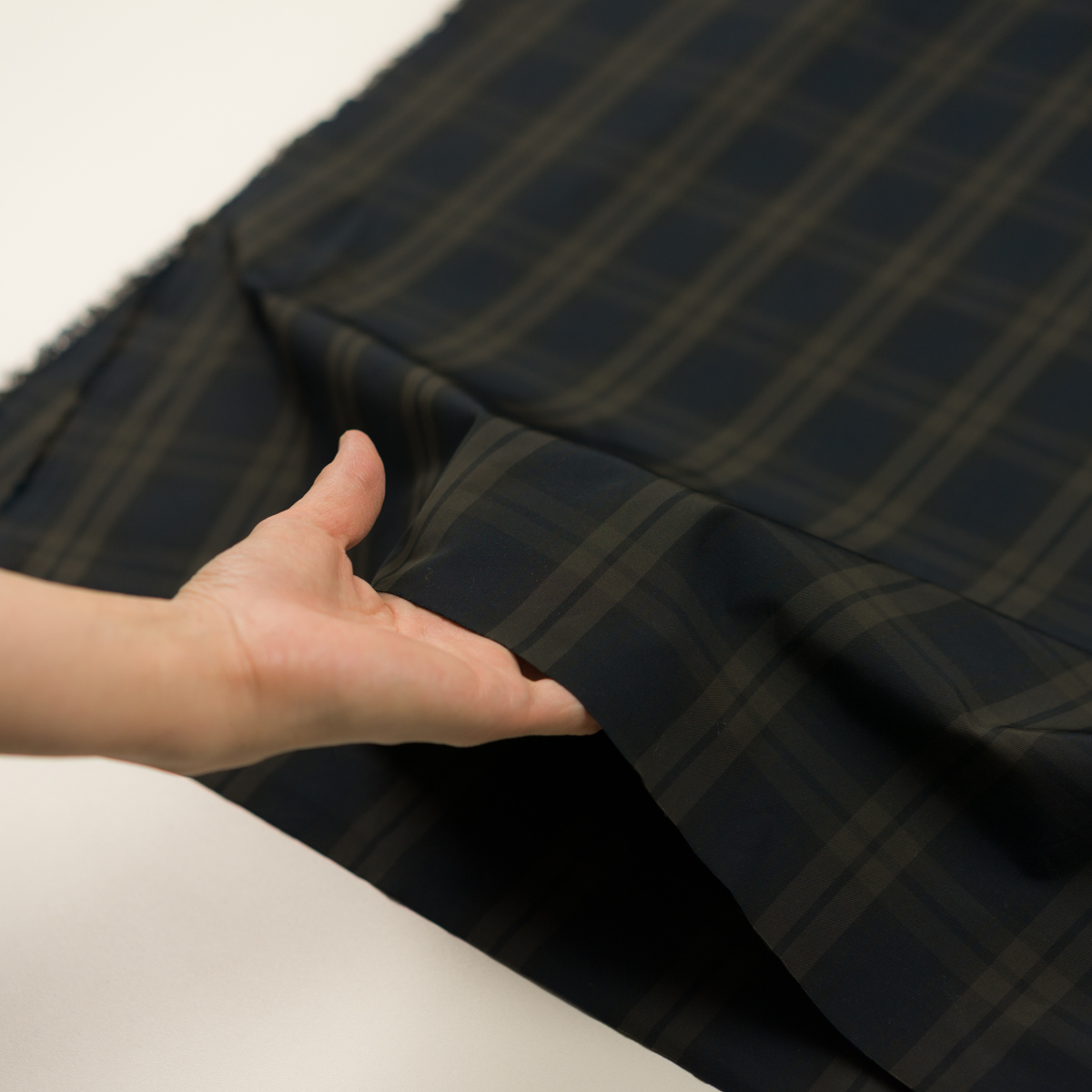 【アウトレット】ポリエステル×チェック(チャコールブラック&オリーブ)×サージ