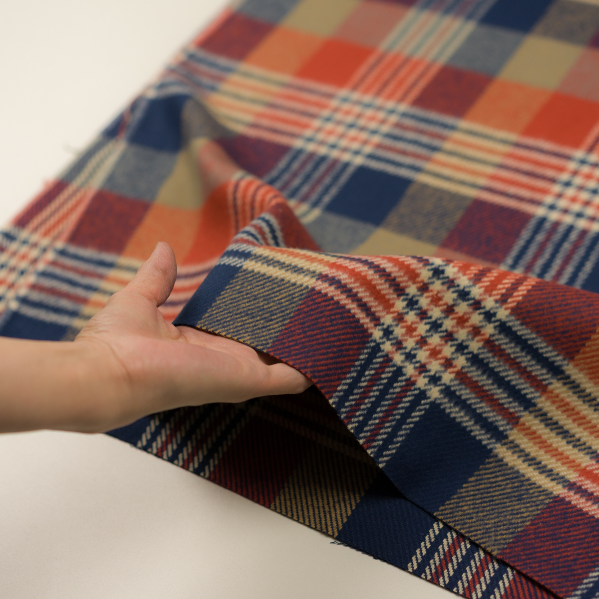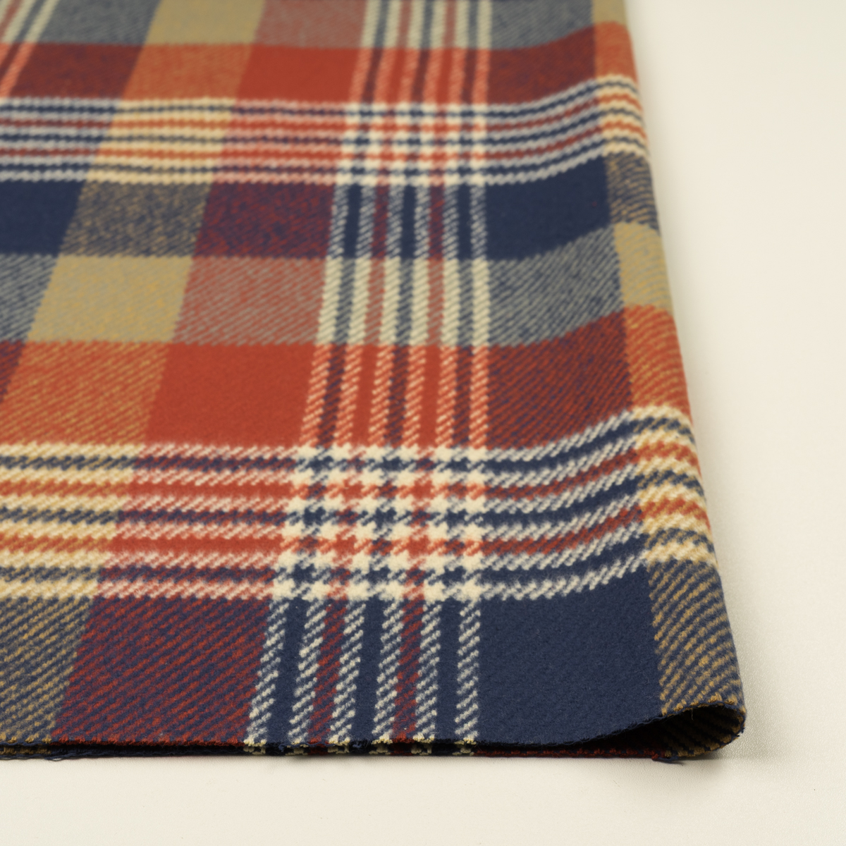 【アウトレット】コットン×チェック(ベージュ、トマト&ネイビー)×カルゼ_起毛加工