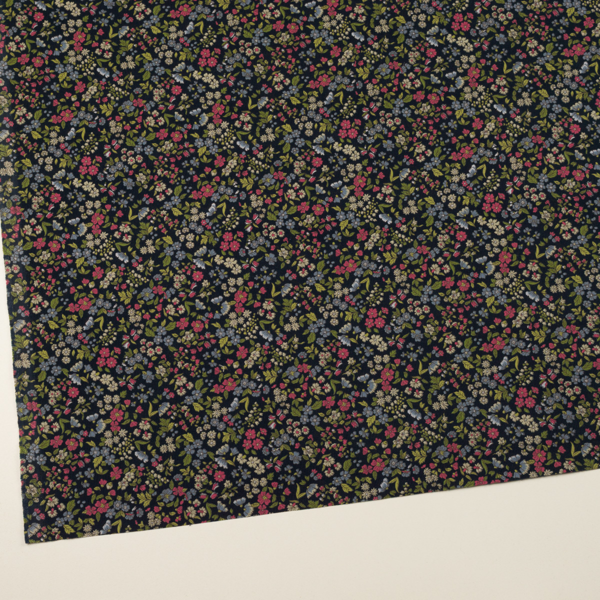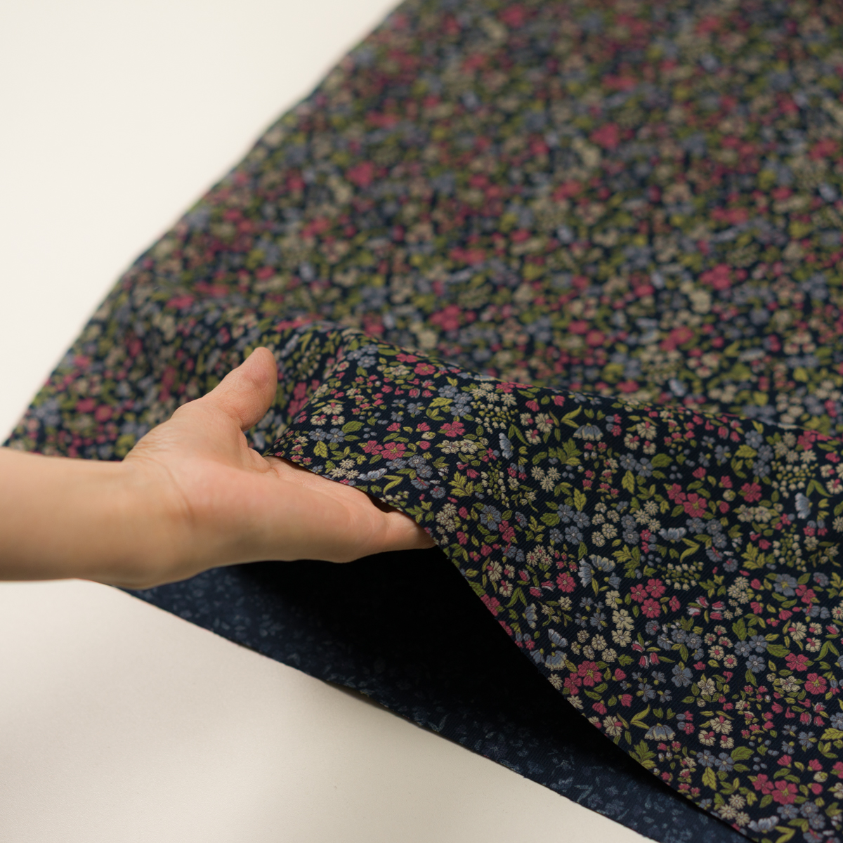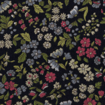 【アウトレット】コットン×フラワー(ネイビー、ローズ&ヒヤシンス)×細コーデュロイ