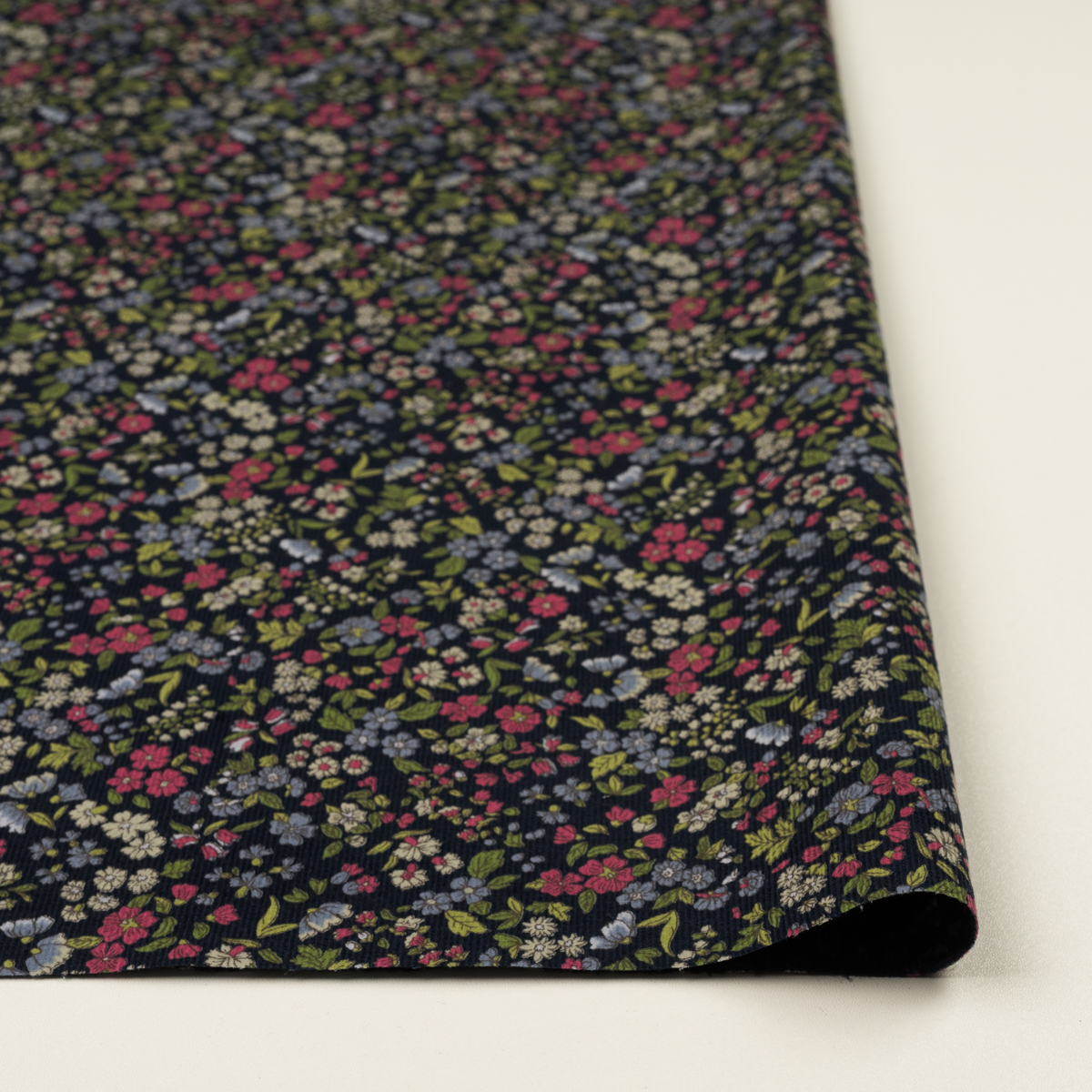 ・畝幅約1.0mmの細コーデュロイ地に、フラワープリント