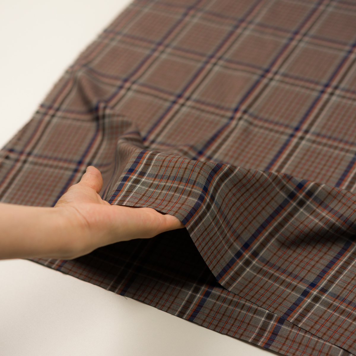 【アウトレット】コットン&ポリエステル×チェック(グレー、レンガ&ネイビー)×ビエラ