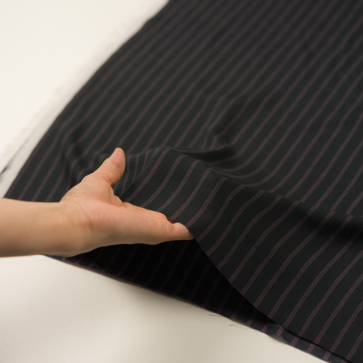 【アウトレット】コットン&レーヨン×ストライプ(チャコールブラック&ワイン)×ローン
