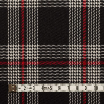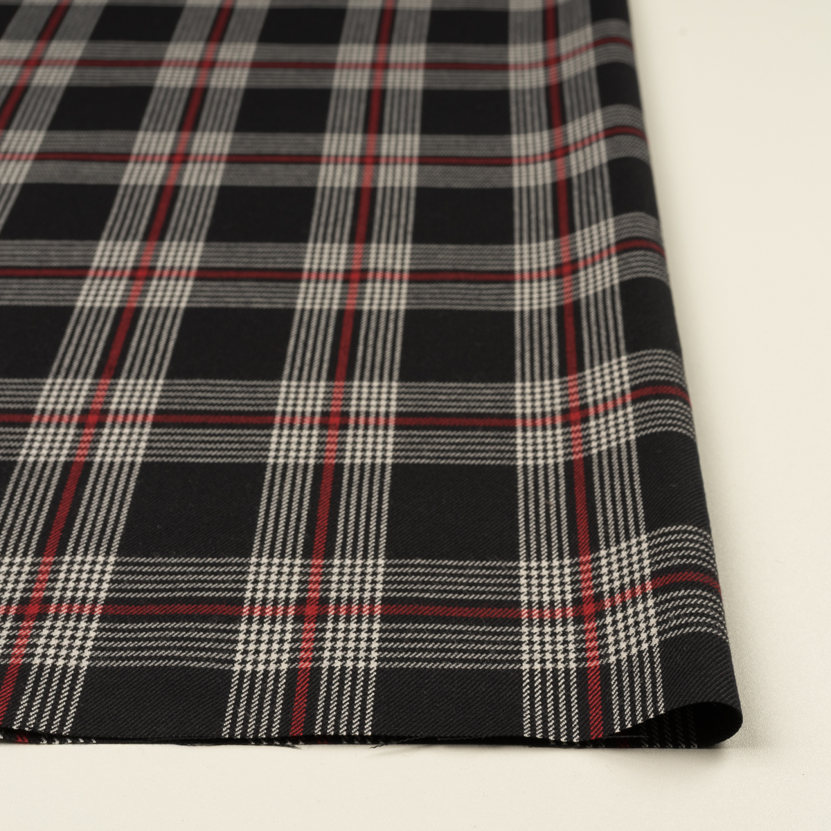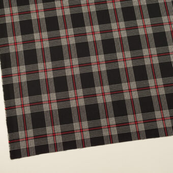 【アウトレット】ウール&ナイロン×チェック(ブラック、レッド&オフホワイト)×サージ