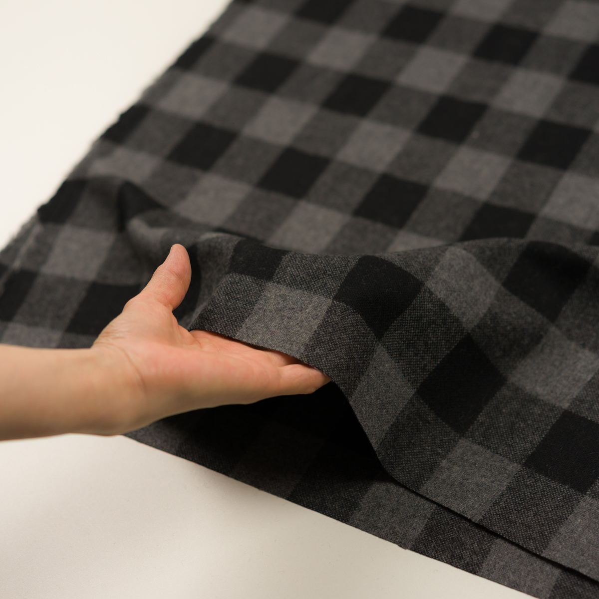【アウトレット】ウール&ポリエステル混×チェック(グレー&チャコール)×ツイード