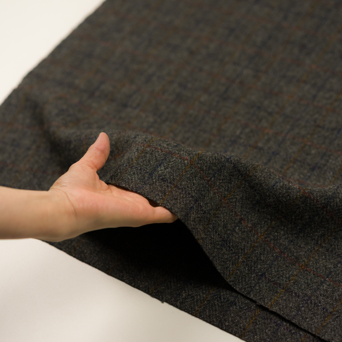 【アウトレット】ウール×チェック(グレー、ネイビー&オレンジ)×ツイード