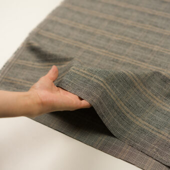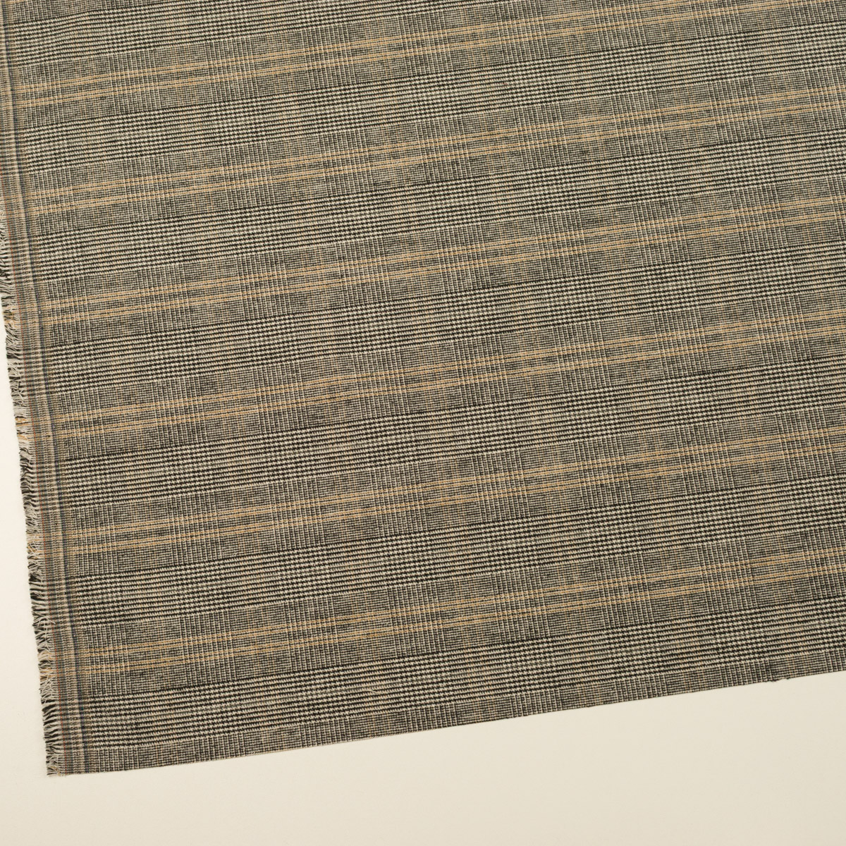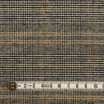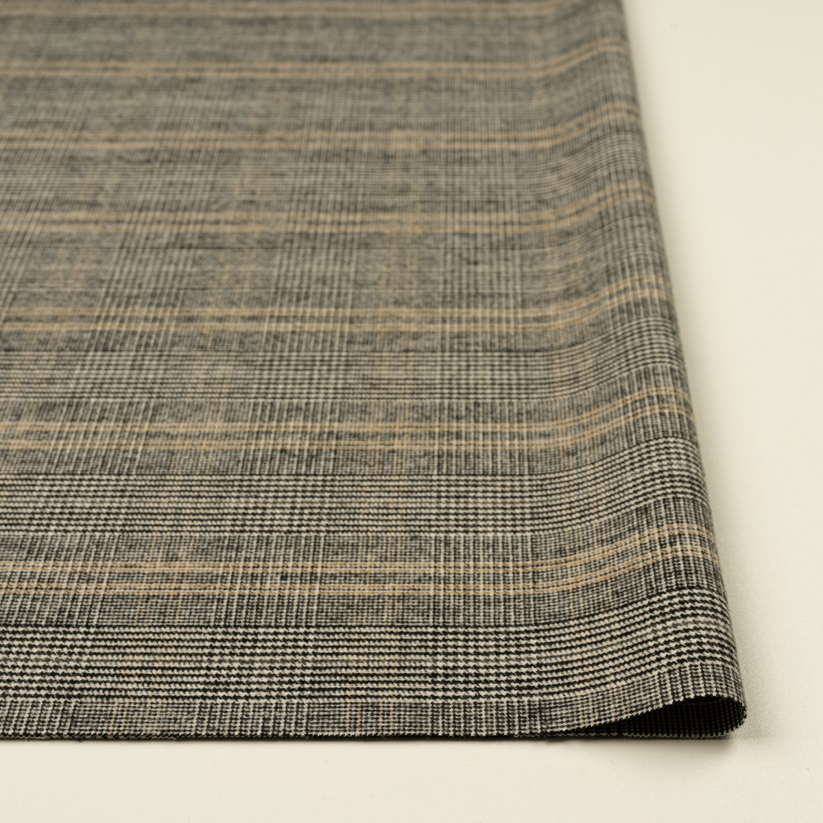 【アウトレット】ポリエステル&レーヨン×チェック(チャコール、エクリュ&ベージュ)×二重織ストレッチ