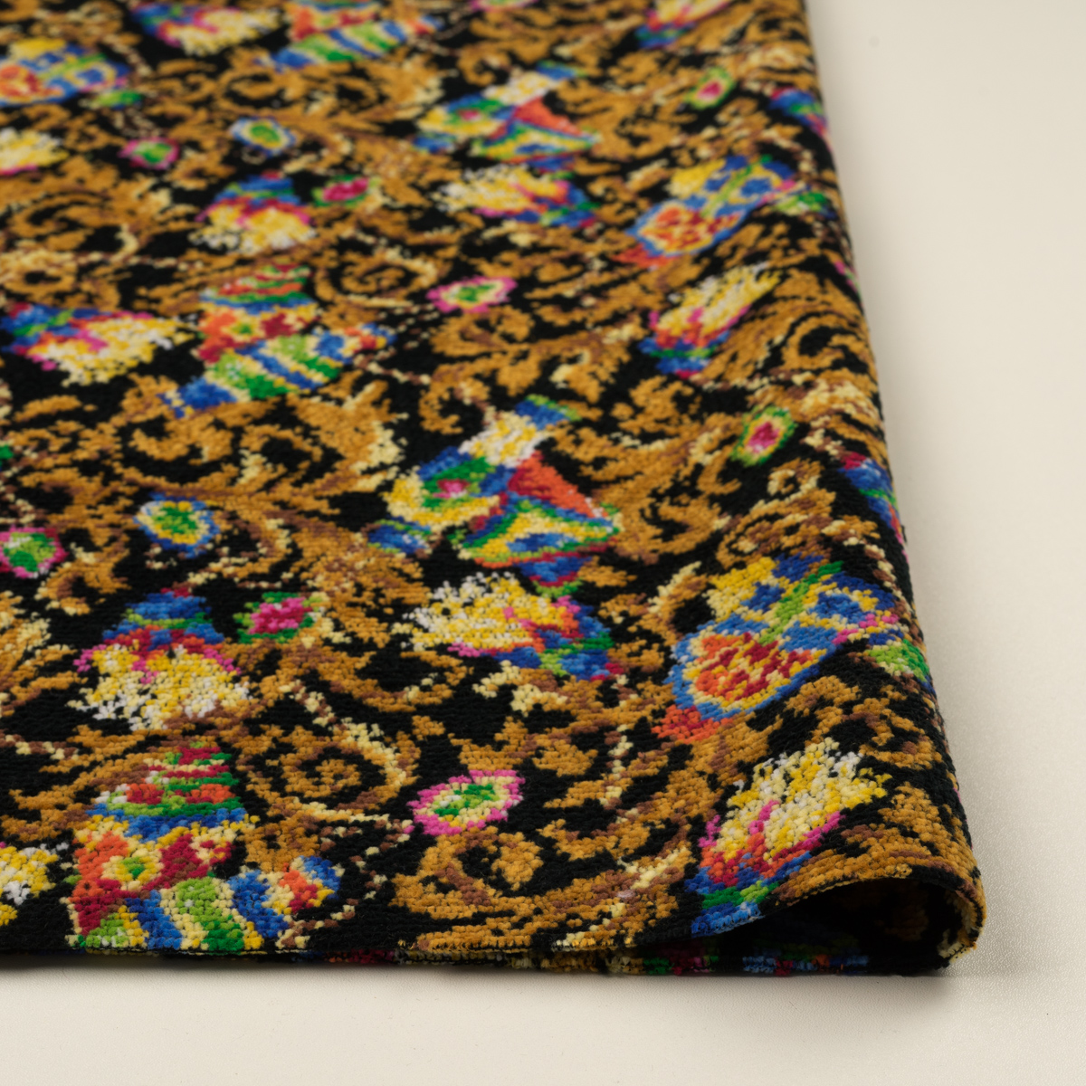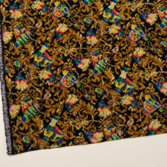 【アウトレット】コットン×ボタニカル(ブラック、モカ&ブルー)×シェニール織