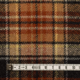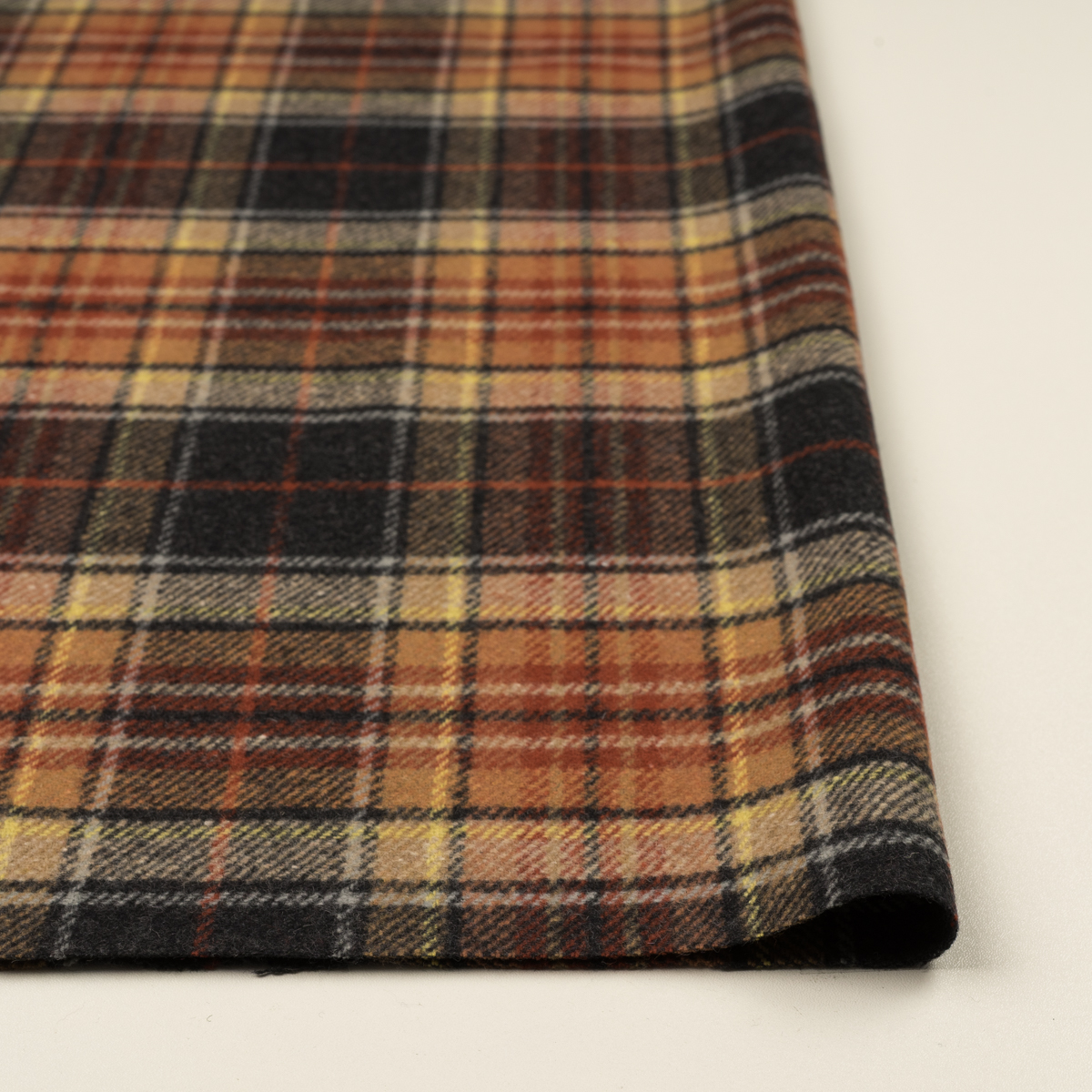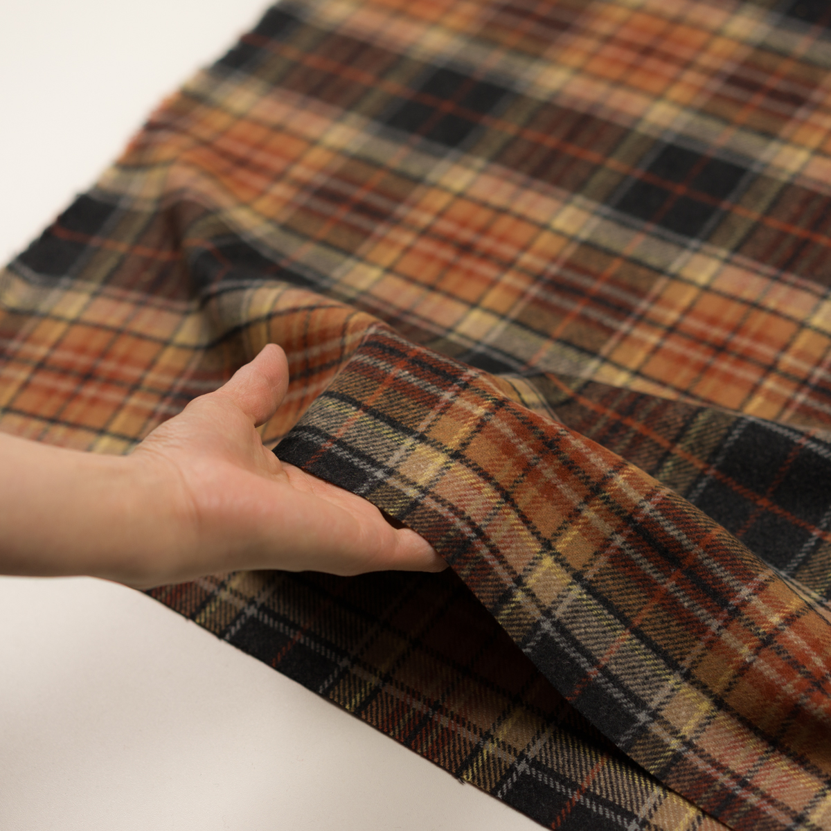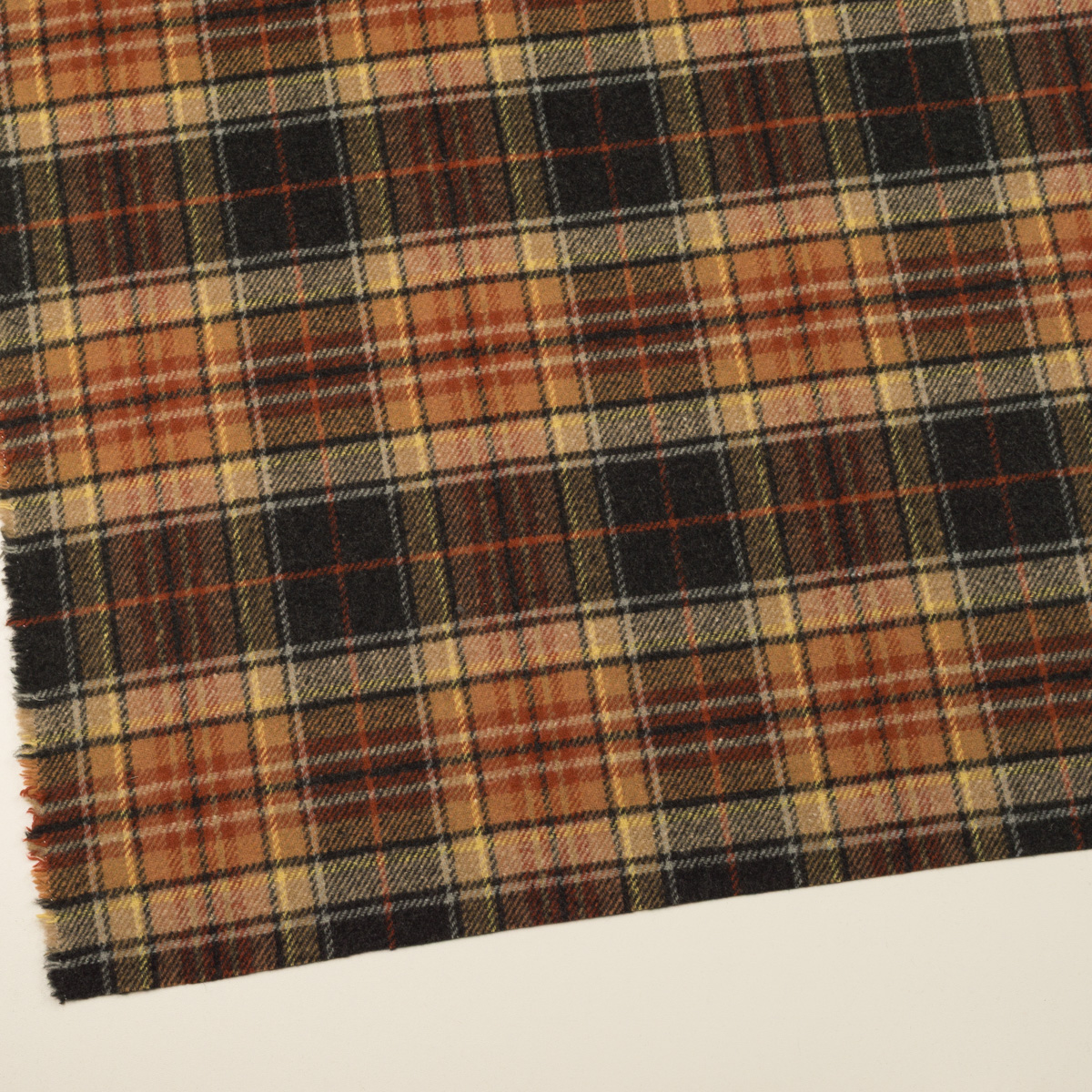 【アウトレット】ウール×チェック(アプリコット&チャコール)×カルゼ