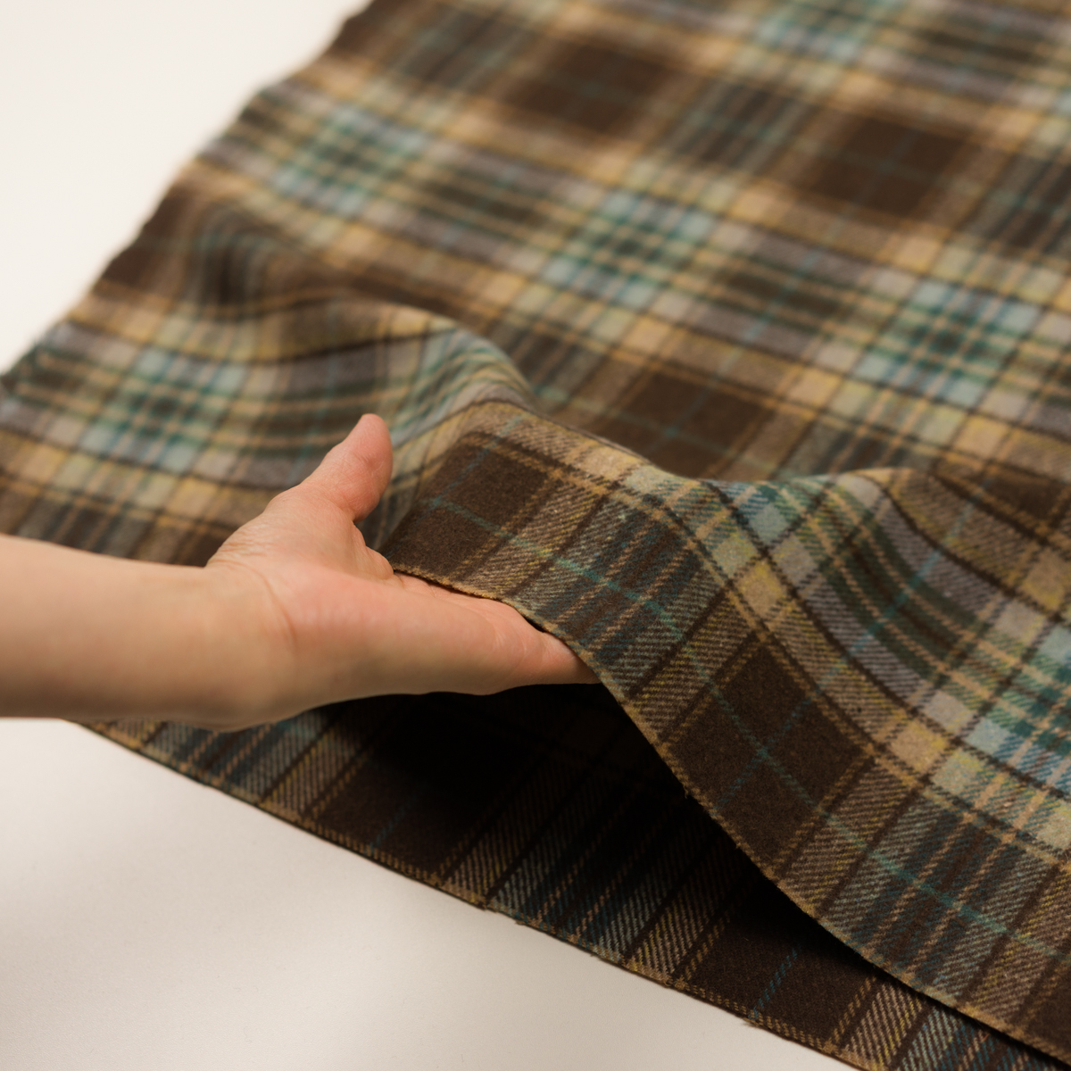 【アウトレット】ウール×チェック(アンティークグリーン&ベージュ)×カルゼ