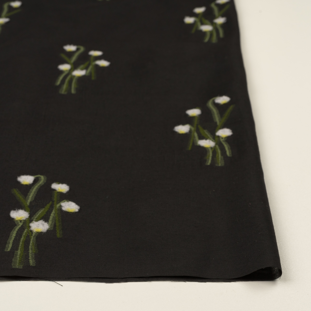 【アウトレット】コットン&ナイロン混×フラワー(ブラック、イエロー&カーキグリーン)×ローンカット・ジャガード