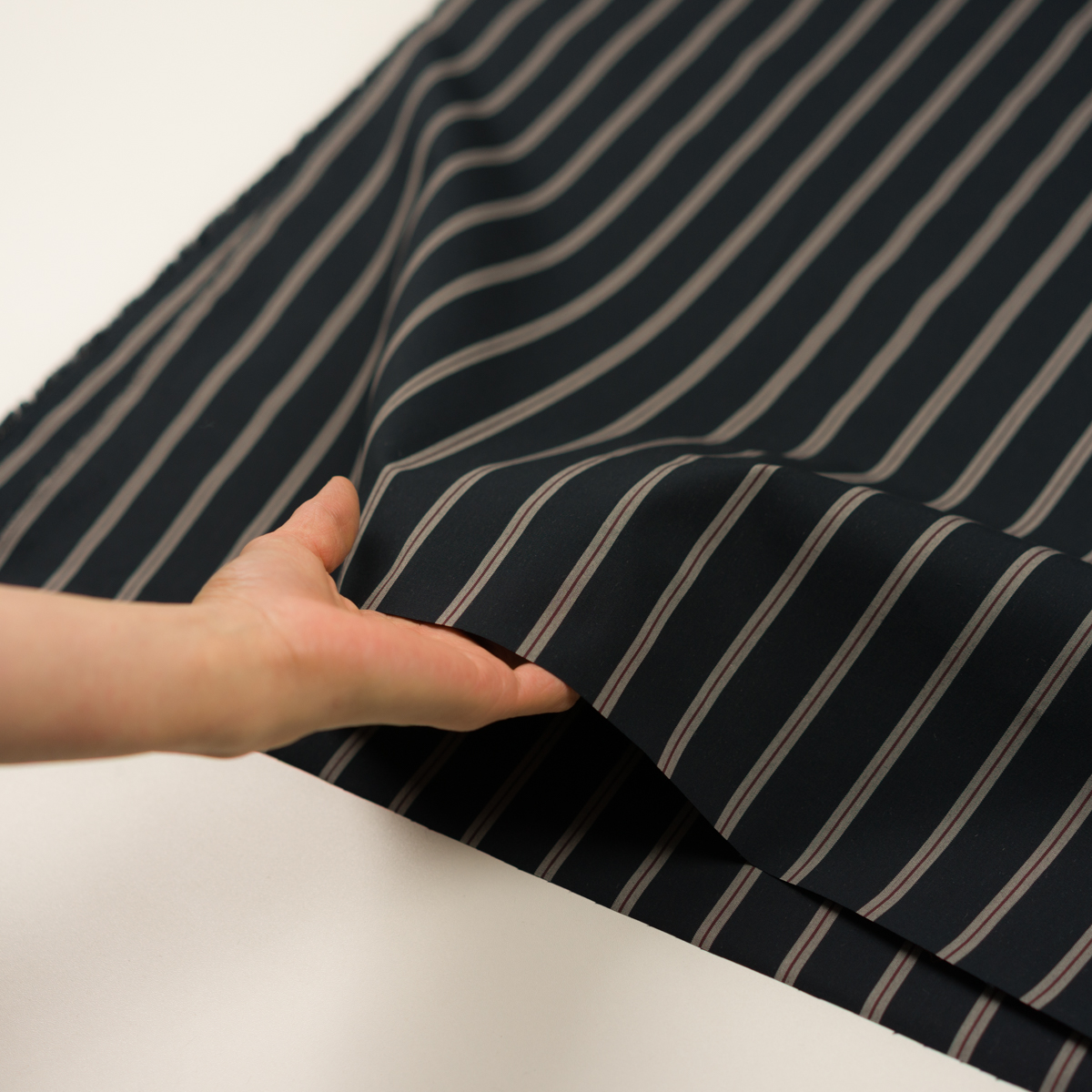 【アウトレット】コットン×ストライプ(ダークネイビー&レーズン)×高密ポプリン
