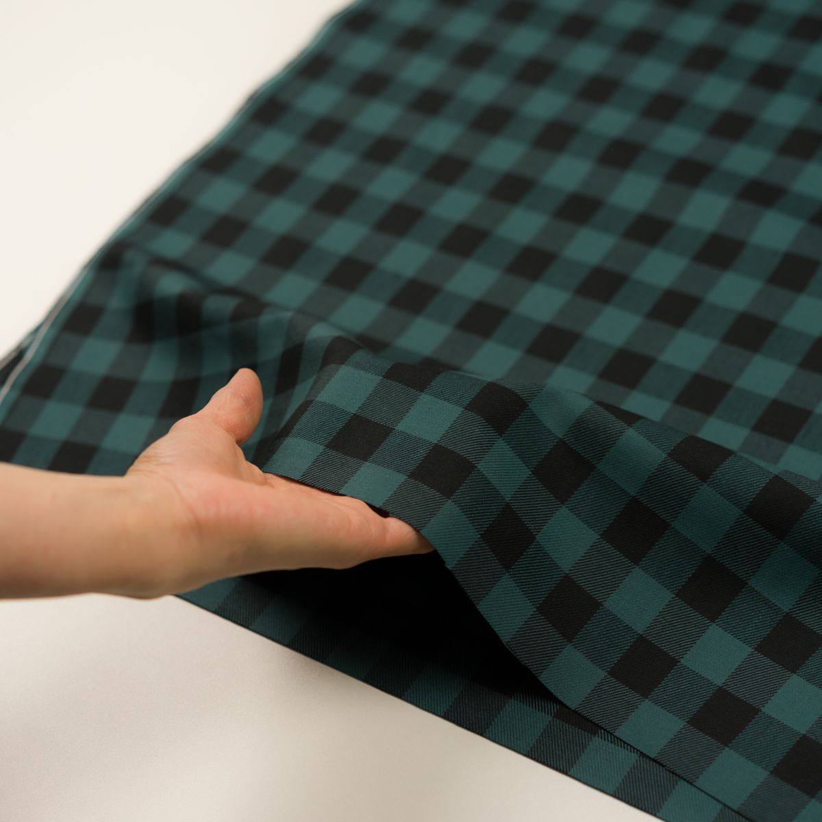 ・タテ約22mm×ヨコ約20mm角のチェック、綾織目のツイル
