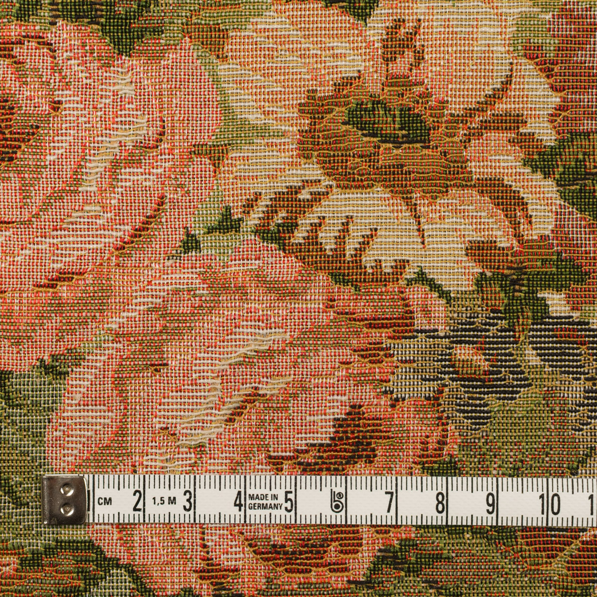 ・多色の織糸で構成された、フラワー柄のゴブラン織