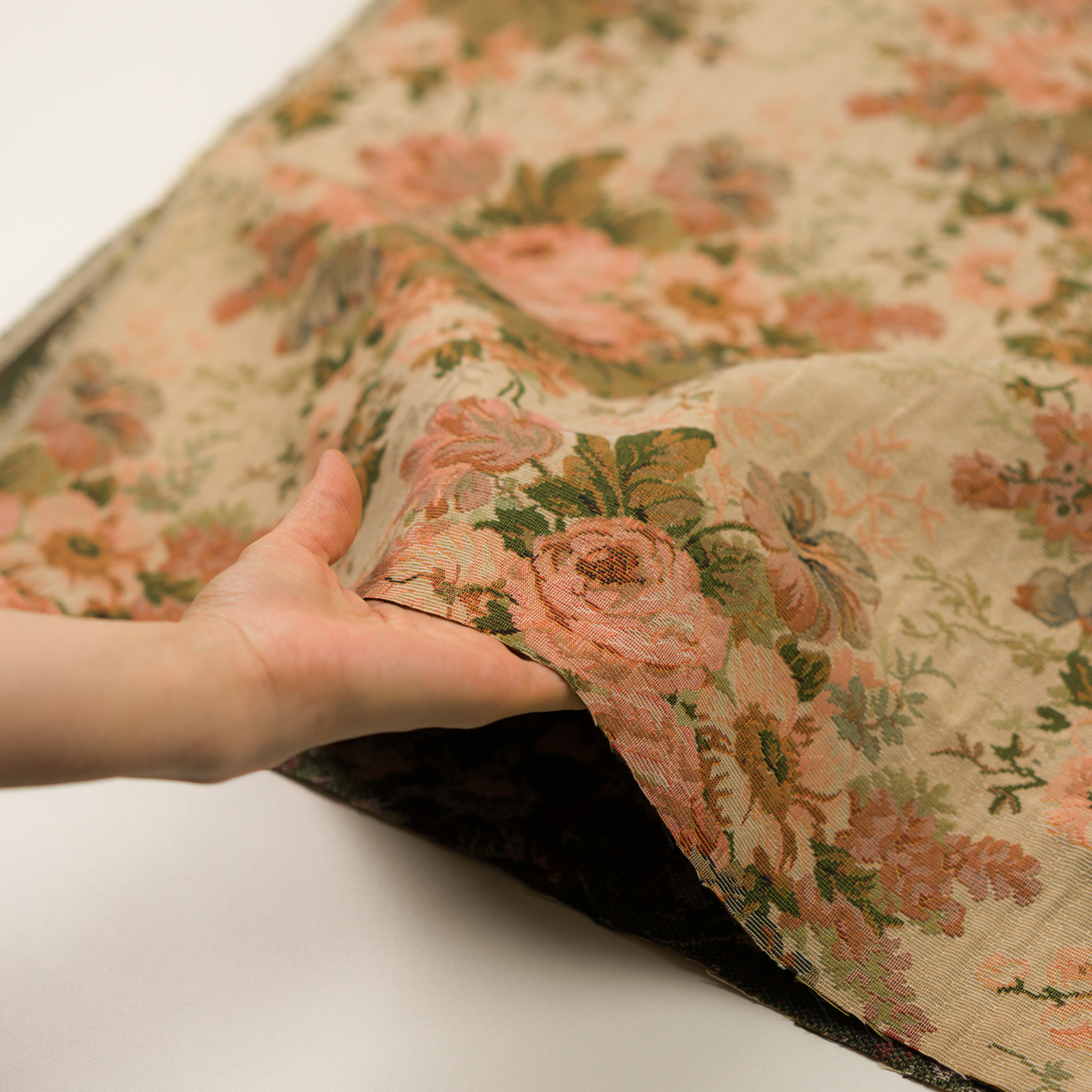 【アウトレット】ポリエステル&コットン×フラワー(ベージュ&ピンクベージュ)×ゴブラン織