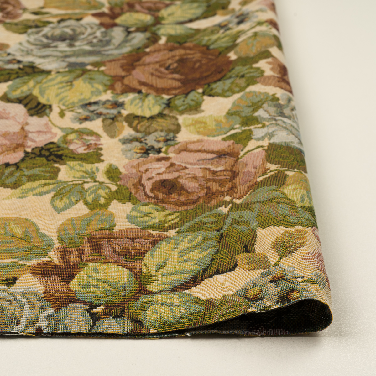 【アウトレット】ポリエステル&コットン×フラワー(ベージュ&グレイッシュピンク)×ゴブラン織