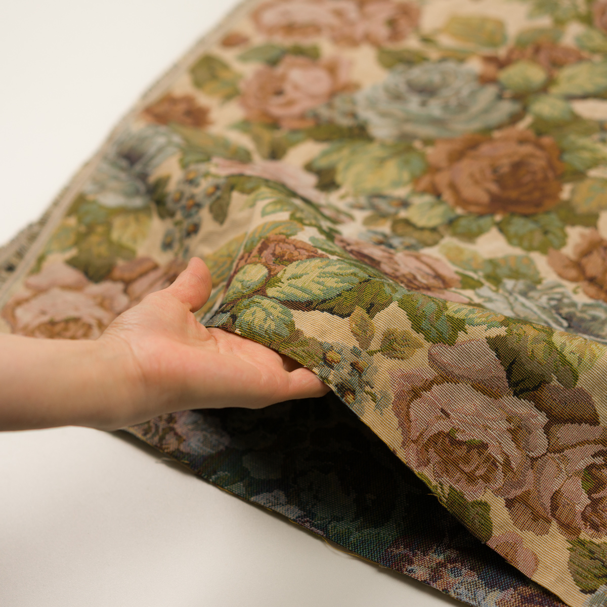 ・多色の織糸で構成された、フラワー柄のゴブラン織