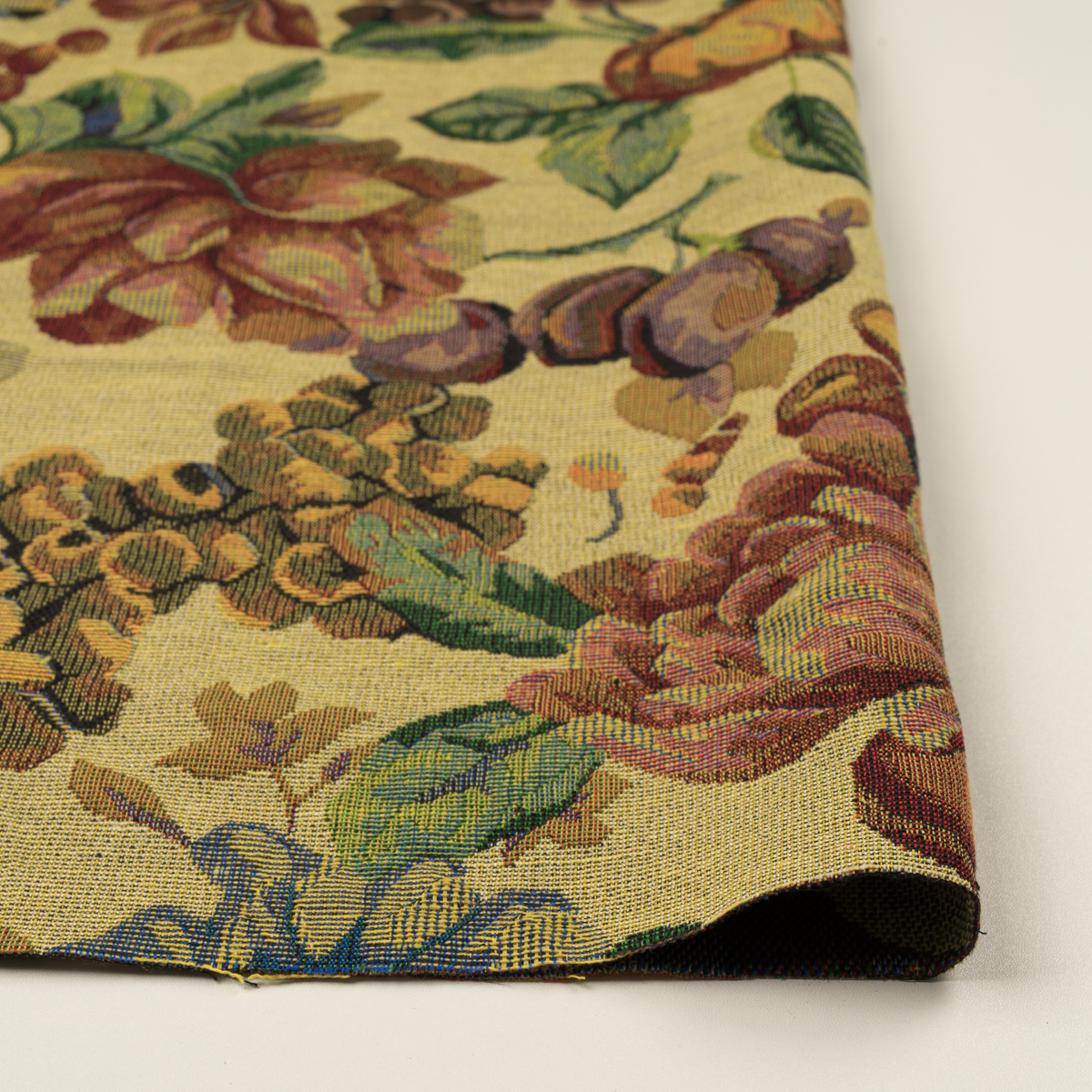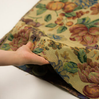 ・多色の織糸で構成された、ボタニカル柄のゴブラン織