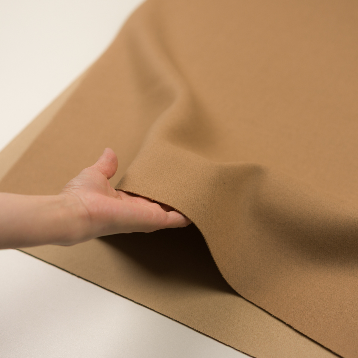 ・2枚の布地がぴったり接結された、Wフェイスのカルゼ(表面はキャメル、裏面はベージュ)