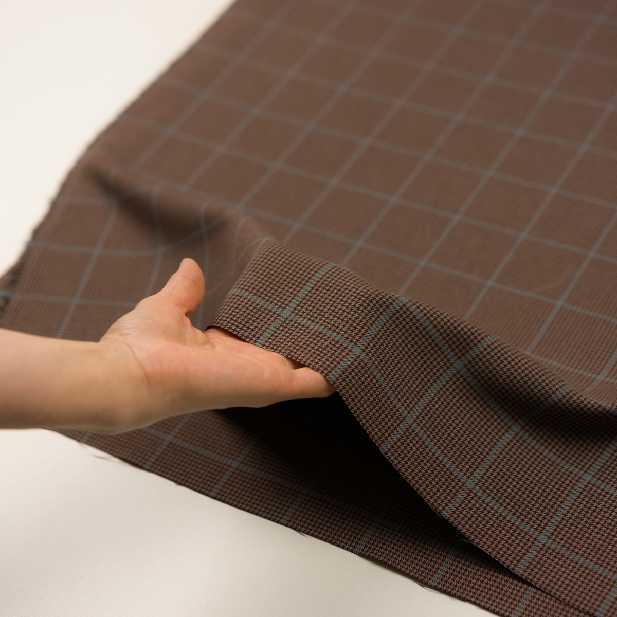 【アウトレット】ポリエステル&レーヨン×チェック(セピア&ビターチョコレート)×千鳥格子