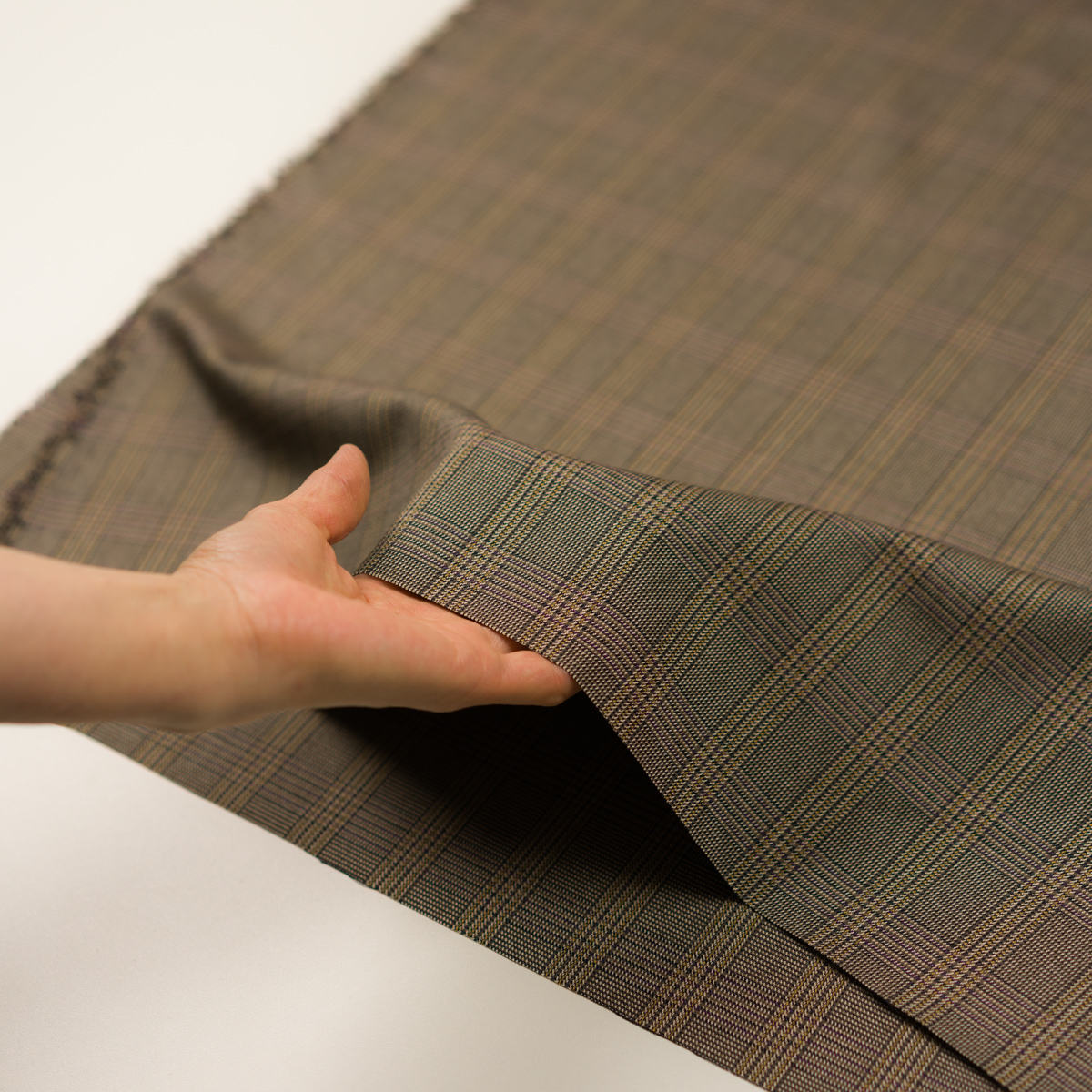 【アウトレット】ポリエステル&レーヨン×チェック(チャコール&アボカド)×二重織
