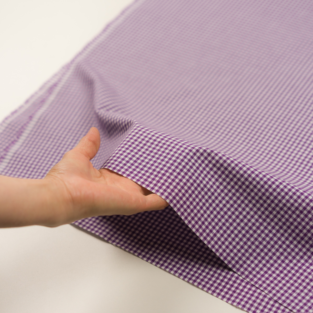 ・約2mm角のギンガムチェック、30番手単糸で織られたシーチング