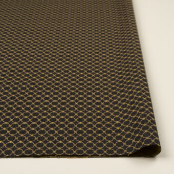 【アウトレット】コットン&ポリエステル×サークル(チャコール&イエロー)×ジャガード・ストレッチ