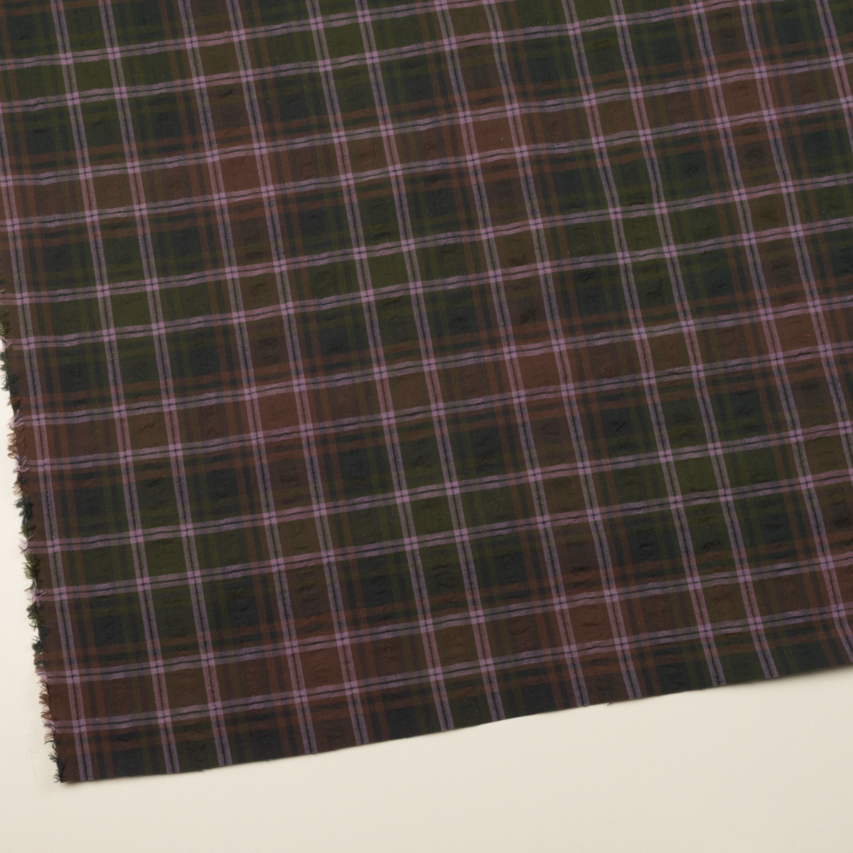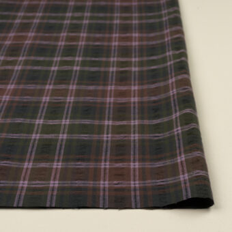 【アウトレット】コットン×チェック(オリーブ&モーブ)×ドビーワッシャー