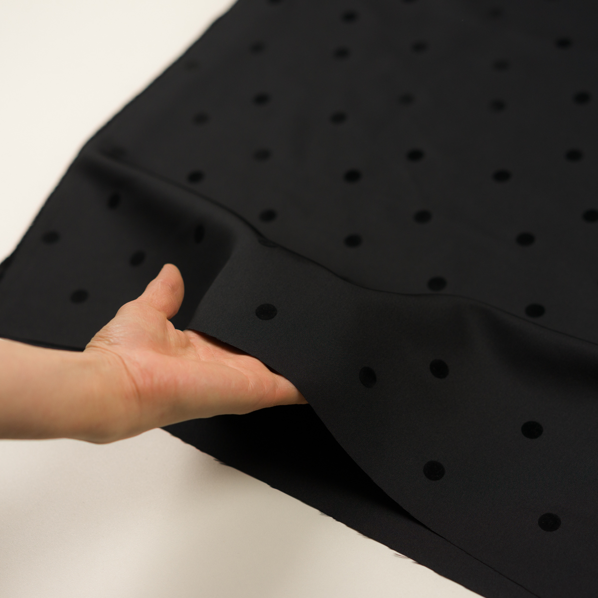【アウトレット】ポリエステル×ドット(ブラック)×タッサーポプリン_フロッキー