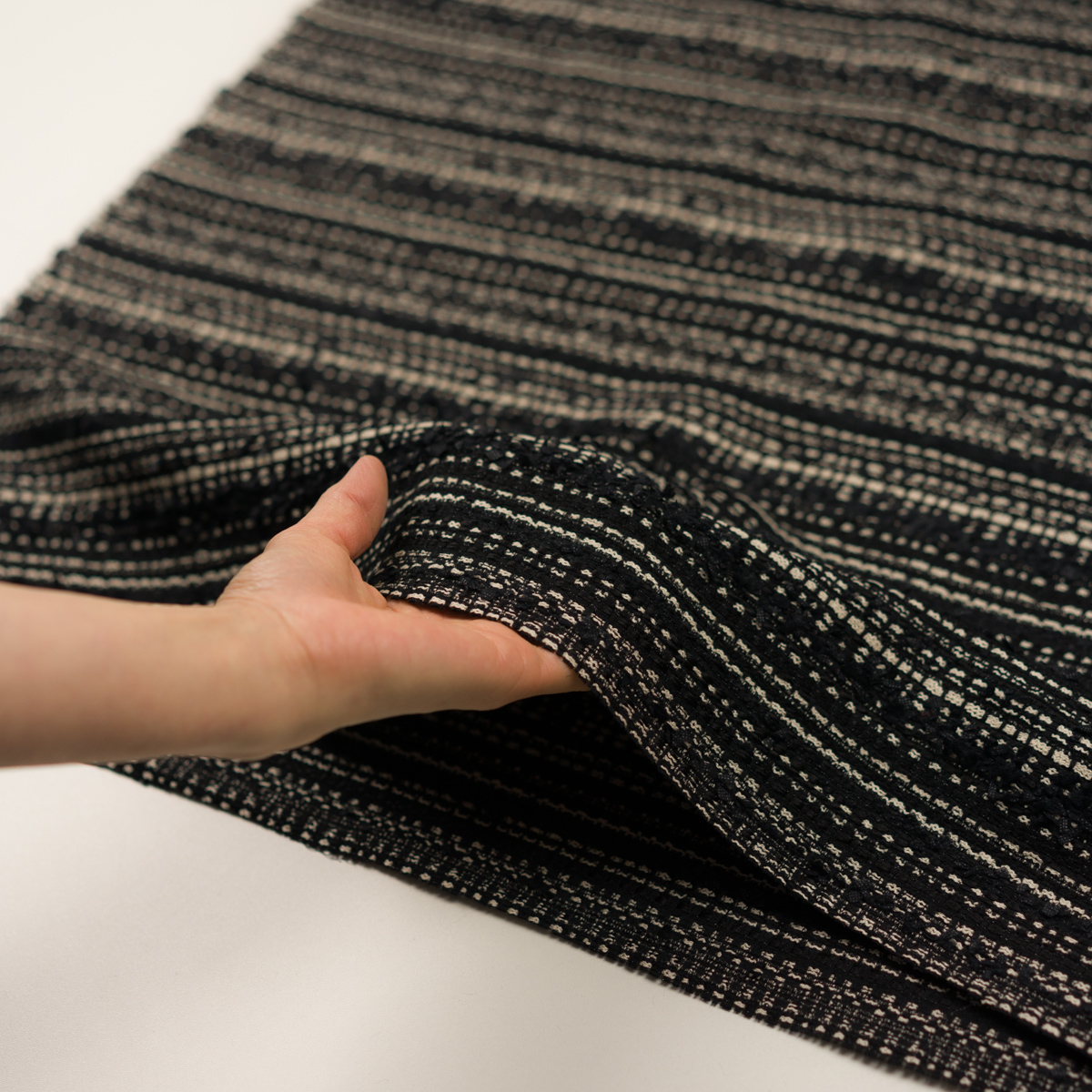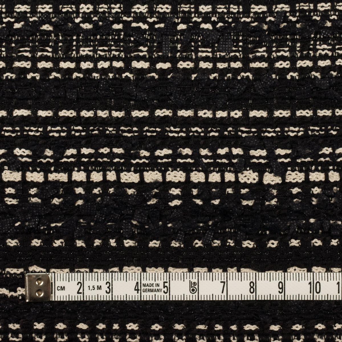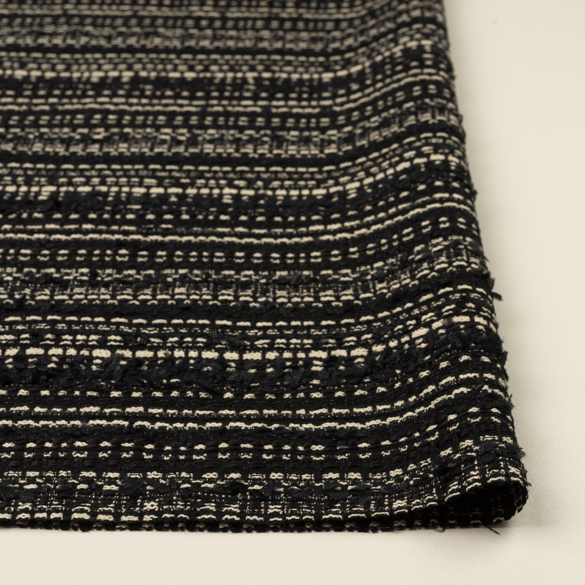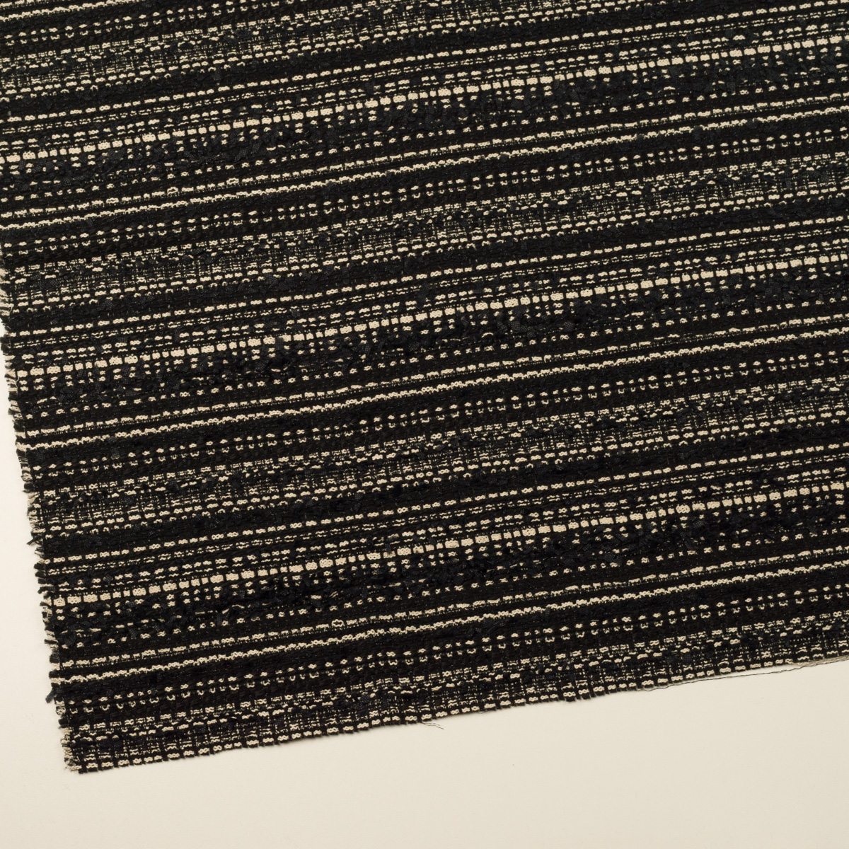 【アウトレット】ポリエステル&レーヨン混×ボーダー(ブラック&エクリュ)×ファンシーツイード