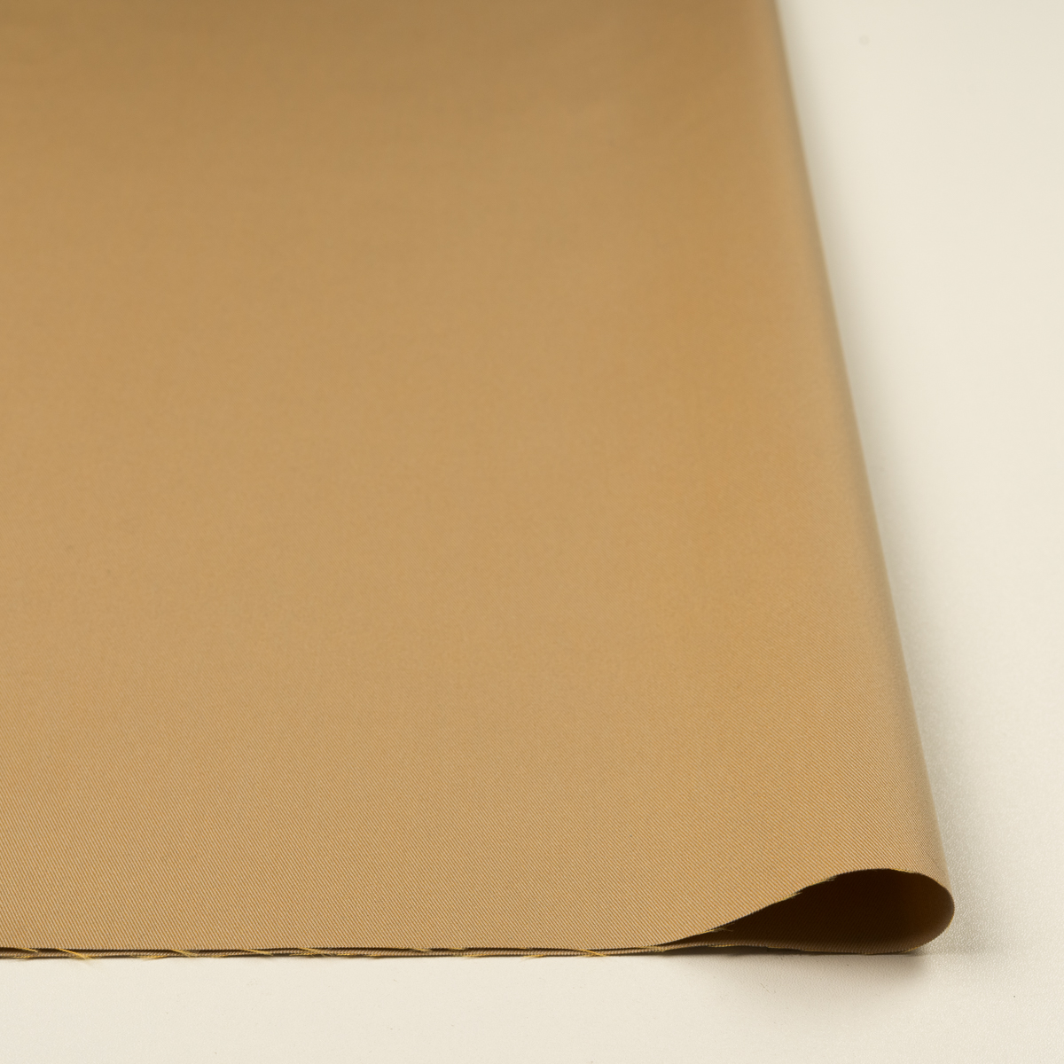 ・経糸はグレイッシュベージュ、緯糸はアプリコットを使用し、密に織られたシャンブレーギャバジン