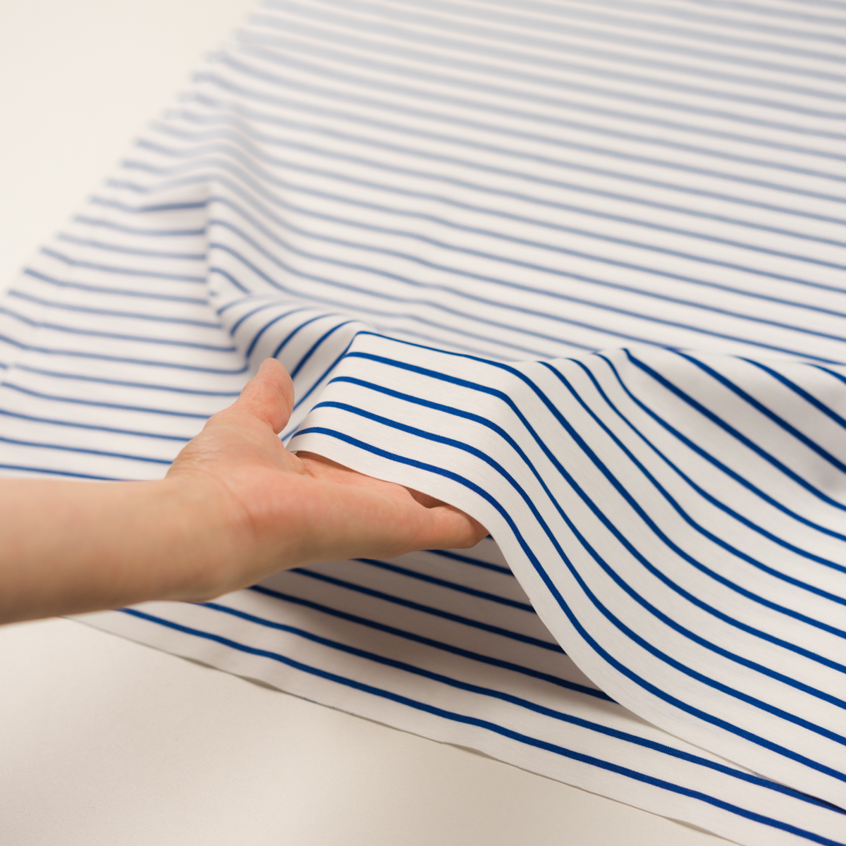 【アウトレット】コットン×ボーダー(ホワイト&ブルー)×スムースニット