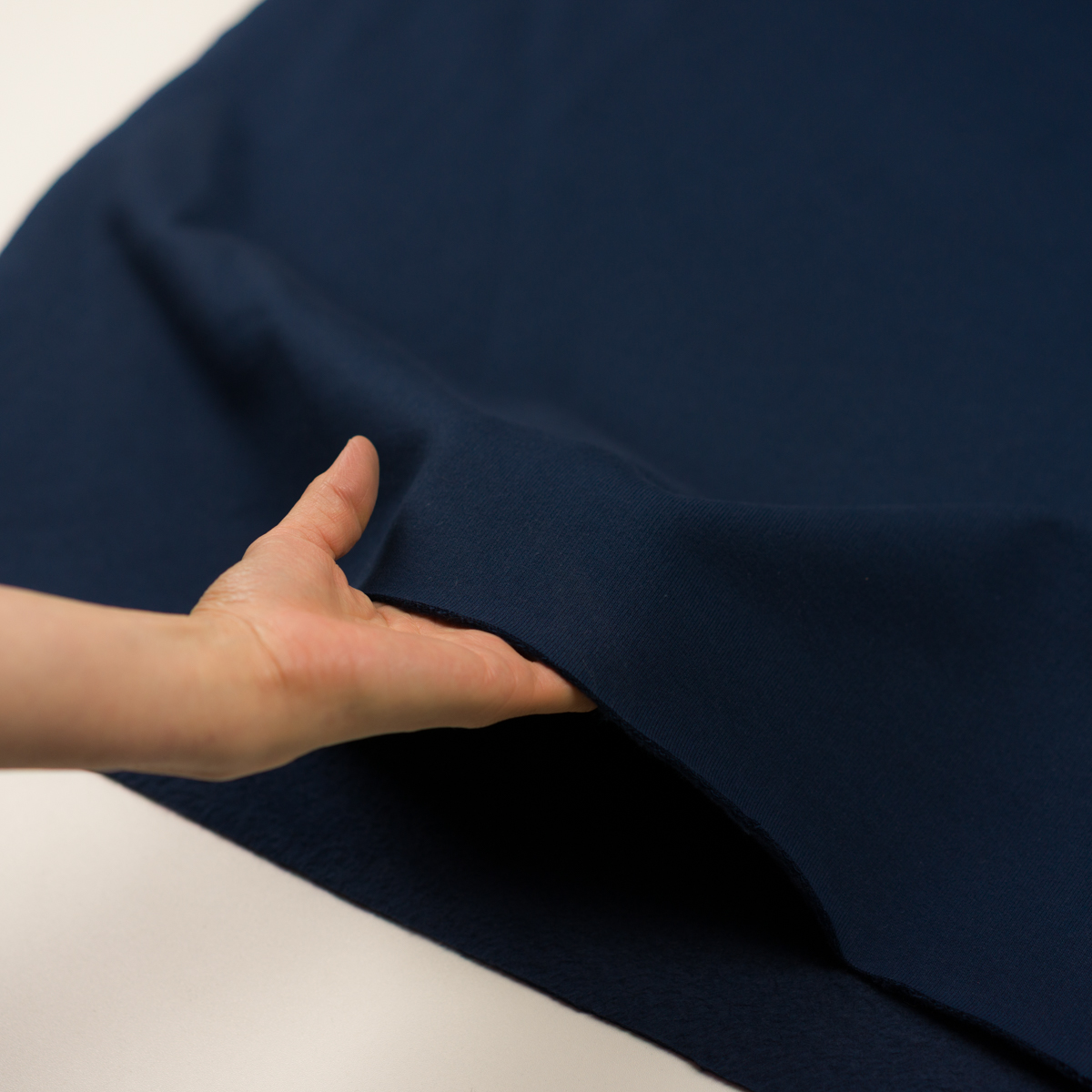 【アウトレット】コットン×無地(ネイビー)×裏毛ニット(裏面起毛)(14oz)
